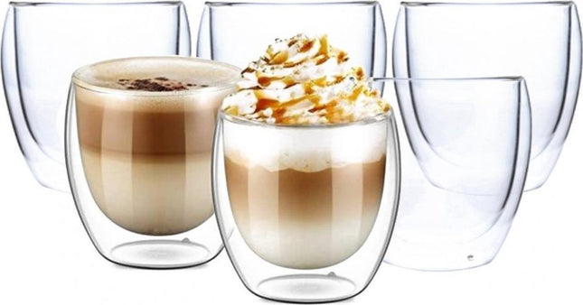 Luxe Latte Macchiato Glazen - Koffieglazen - Cappuccino Glazen - Cappuccino Kop - Latte Glazen - 280 ML - Set Van 6