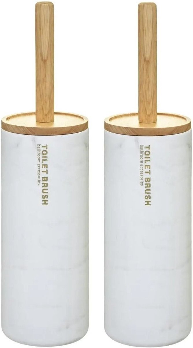 2x stuks 5five wc-/toiletborstel met houder - wit met marmer effect - kunststof/bamboe - 38 cm
