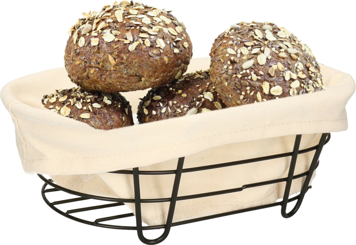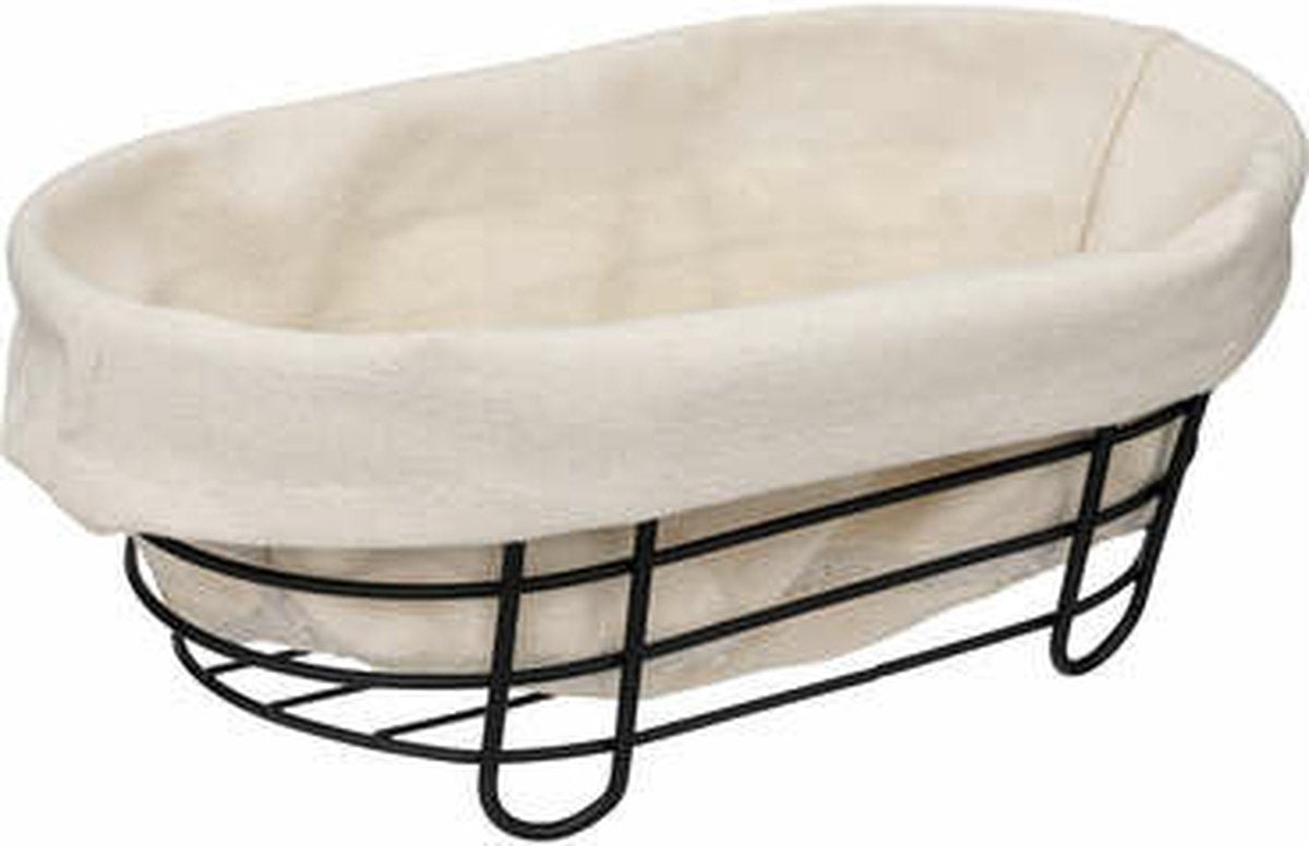 5Five - Broodmand Bistro - metaal/stof - ovaal - zwart/creme wit - 28 x 18 x 11 cm
