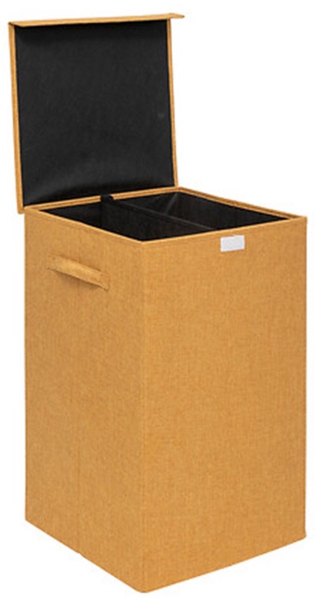 5Five Eureka sorteer wasmand - 2x - 74 liter - okergeel - 37 x 37 x 60 cm - MDF/Polyester stof - met afsluitklep