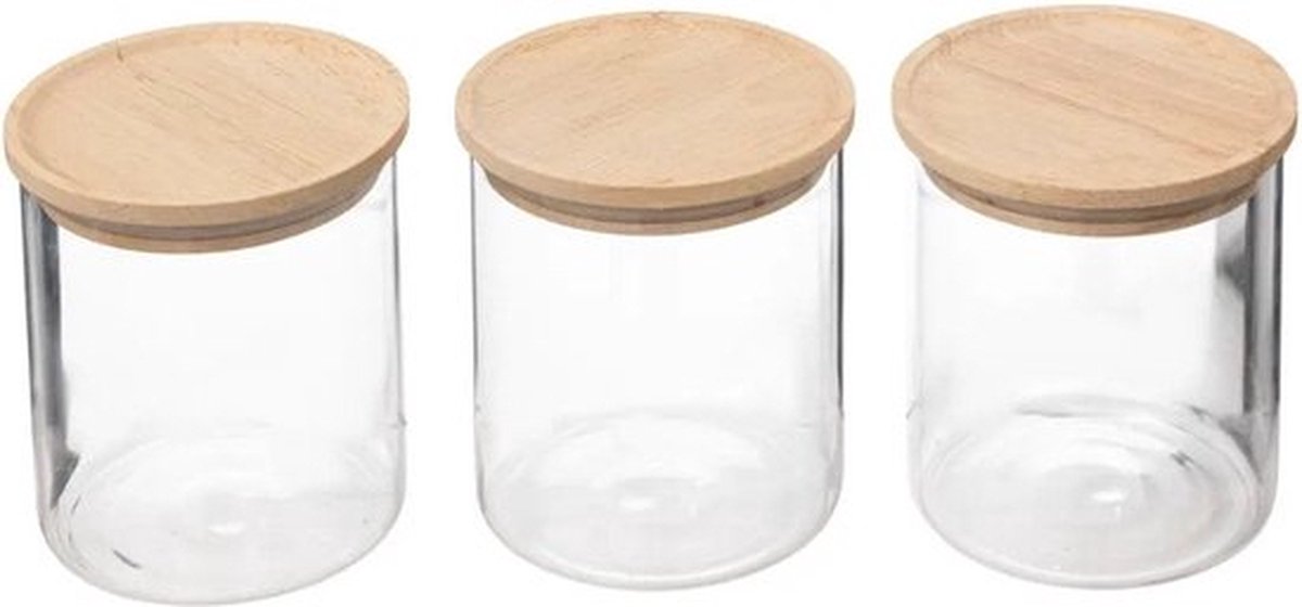 5Five Glazen potten 350ml met luchtdichte rubberhouten deksel - Set van 3 - Transparant