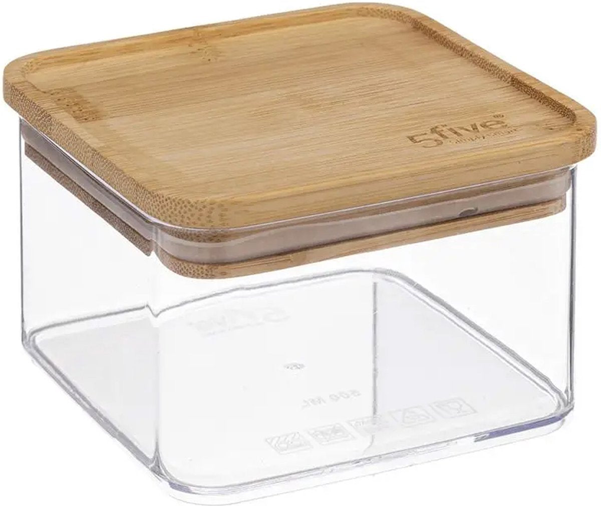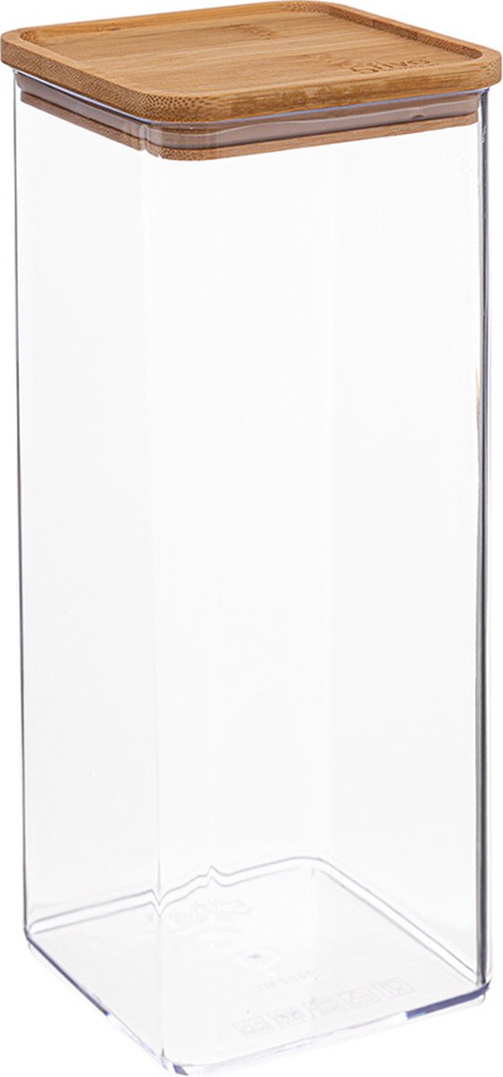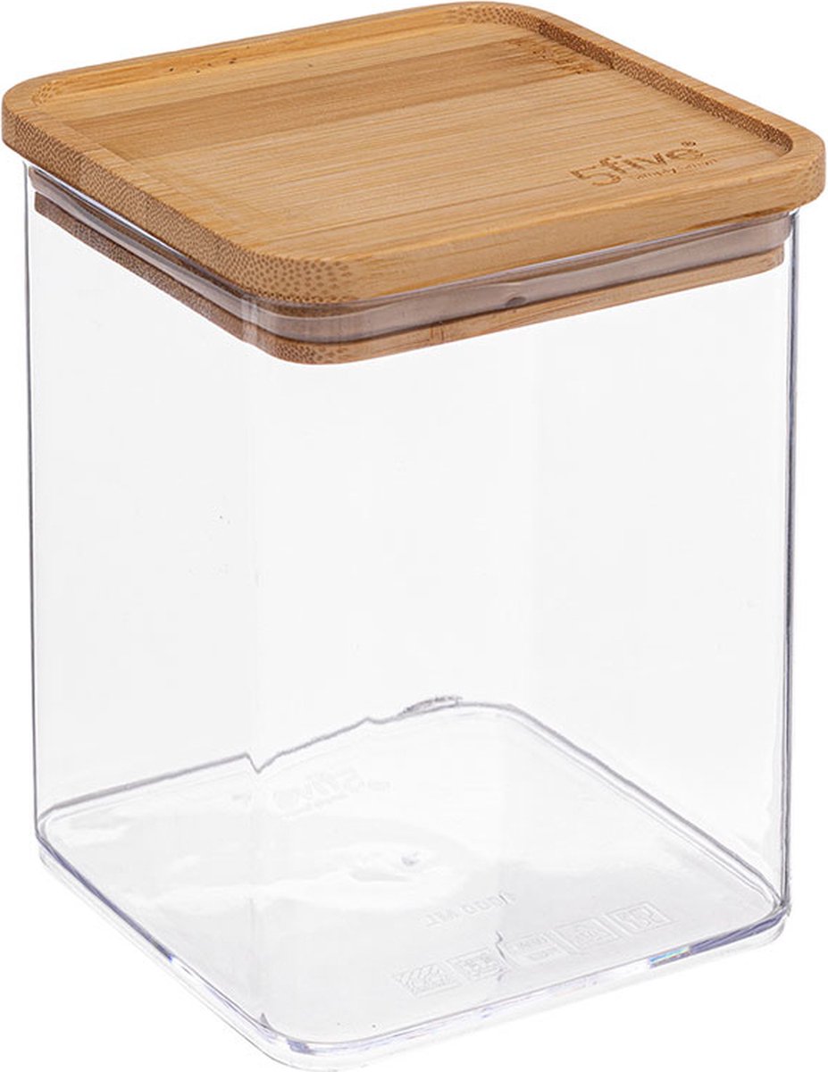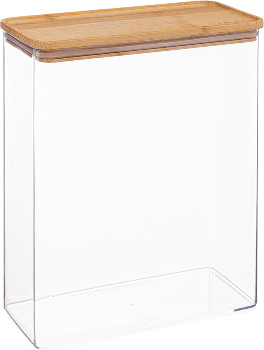 Voedsel bewaren keuken handige mooie voorraadpot/bus gemaakt van kunststof met bamboe houten deksel. Inhoud: 500 ml. Geschikt om etenswaren langdurig te bewaren. Luchtdichte afsluitbare deksel. Afmeting: 10 x 10.5 cm. Verkrijgbaar in vele formaten. Serie: Berlino.
