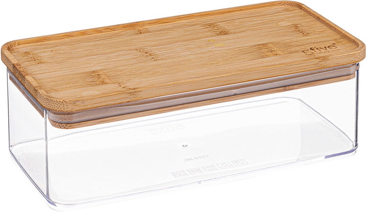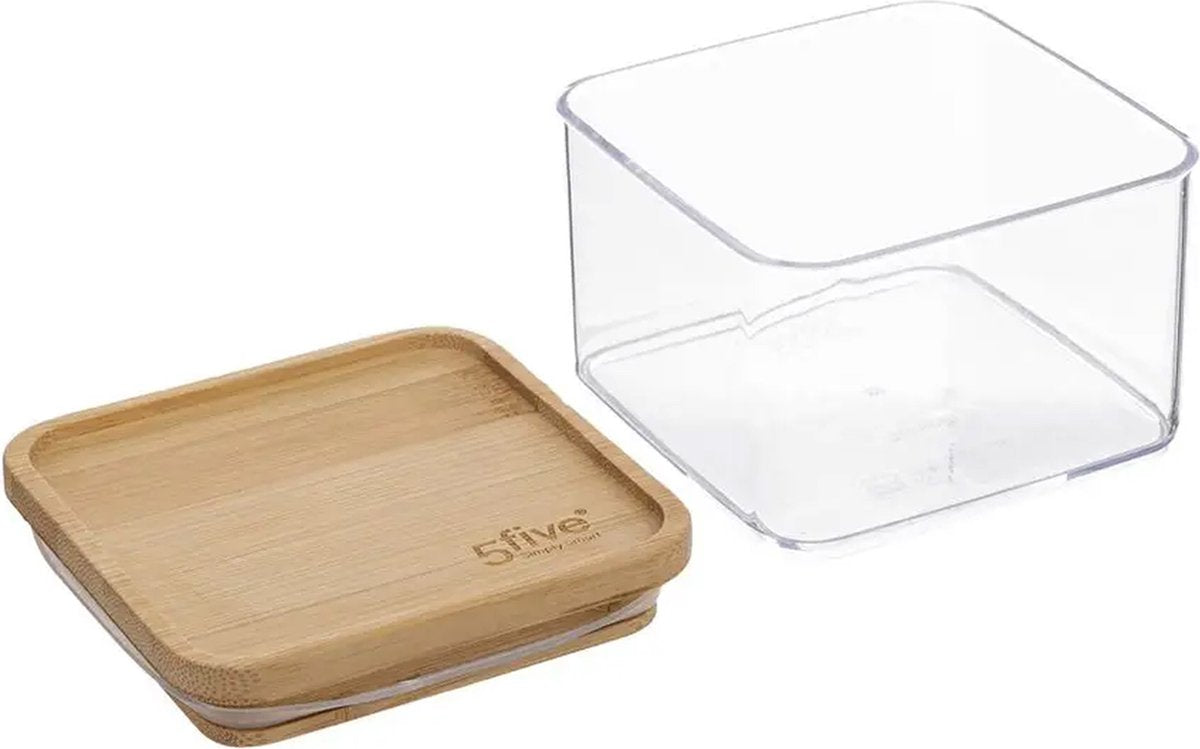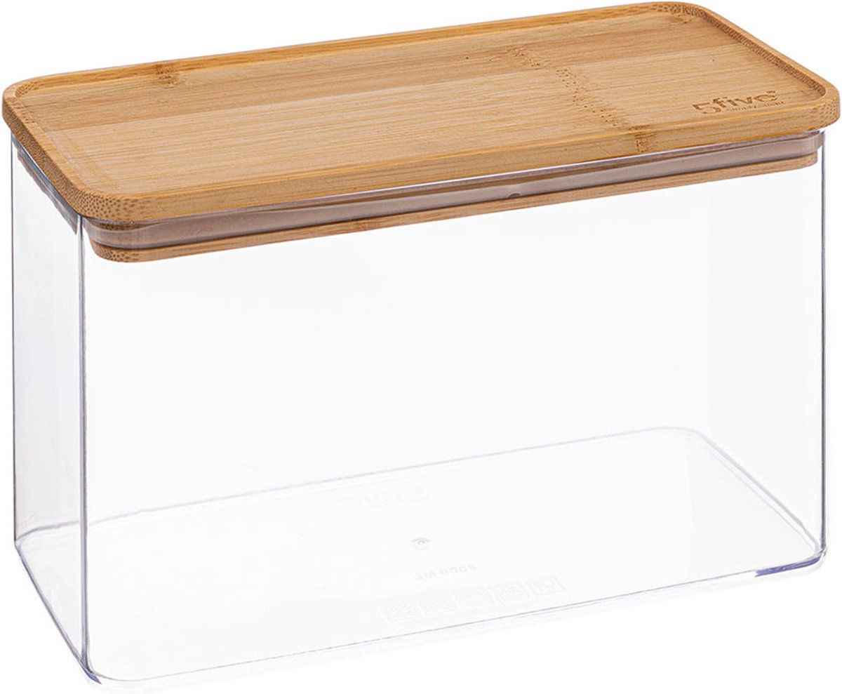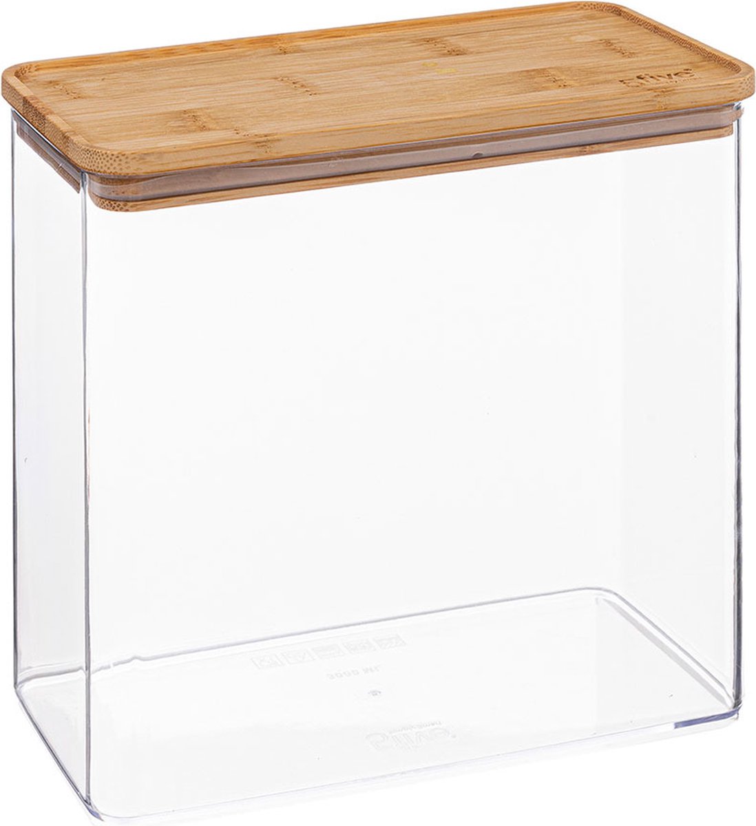 Voedsel bewaren keuken handige mooie voorraadpot/bus gemaakt van kunststof met bamboe houten deksel. Inhoud: 500 ml. Geschikt om etenswaren langdurig te bewaren. Luchtdichte afsluitbare deksel. Afmeting: 10 x 10.5 cm. Verkrijgbaar in vele formaten. Serie: Berlino.