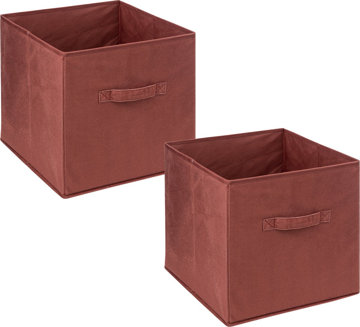 4 stuks opbergmand/kastmand in de kleur Bordeaux rood voor diverse soorten spullen. Past perfect in de meeste kasten systemen. De opbergbox/mand heeft een handvat aan de voorkant, voor het makkelijk uit de kast pakken/schuiven. De zijwanden zijn verstevigd met 2mm dik karton voor extra stabiliteit en daardoor zijn de manden zeer geschikt voor bijvoorbeeld in een kinderkamer. of een vakkenkast. Wanneer u de mand niet nodig heeft kunt u deze makkelijk opvouwen en opbergen. Afmeting: ca. 31 x 31 x 31 cm. Inhoud: ca. 29 liter. Materiaal: karton/kunststof.