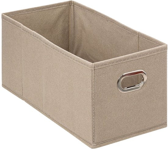 Een handige opvouwbare opbergmand beschikbaar in verschillende kleuren en maten. Is ideaal te gebruiken in een kubuskast of kledingkast, maar kan natuurlijk ook als losse opbergmand worden gebruikt waar ook in huis. Deze opvouwbare opbergmand van Five® is de ultieme opberger voor allerlei ruimtes in huis. De vilten opbergbox is opvouwbaar, heeft een geïntegreerd handvat en een verstevigde bodem die je kunt vast ritsen wanneer je deze in-en uitklapt. De manden zijn in meerdere maten beschikbaar: * Small: 15 cm breed, 31 cm diep en 15 cm hoog. * Medium: 31 cm breed, 31 cm diep en 15 cm hoog. * Large: 31 cm breed, 31 cm diep en 31 cm hoog. Multi inzetbare mand Handiger opbergen dan met deze opvouwbare opbergmanden kan het niet worden! Wanneer je de box niet in gebruik hebt, vouw je deze eenvoudig op en neemt weinig ruimte in beslag. De maten van deze opbergboxen zijn daarnaast ook uitermate geschikt voor het gebruik in kubuskasten. Wat ga jij ermee opbergen? Knuffels, speelgoed, ondergoed of iets anders? Opvouwbare opbergbox kopen Is dit niet wat je zoekt? Bekijk het ruime assortiment opbergmanden, boxen en bakjes