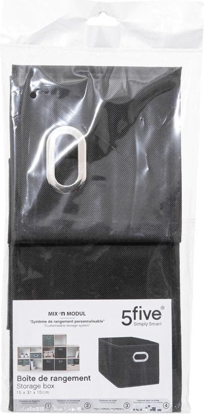 2 stuks opbergmand/kastmand in de kleur zwart, gemaakt van linnen met afmetingen van 31 x 15 x 15 cm. De opbergbox heeft een handvat aan de voorkant, voor makkelijk uit de kast pakken/schuiven. De zijwanden zijn verstevigd met 2mm dik karton voor extra stabiliteit en daardoor zijn de manden zeer geschikt voor bijvoorbeeld in een kinderkamer. of een vakkenkast Wanneer u de mand niet nodig heeft kunt u deze makkelijk opvouwen en opbergen. Voor meer formaten van deze manden zoekt u op de term: mixmodul. Afmeting: ca. 31 x 15 x 15 cm. Inhoud: ca. 7 liter. Materiaal: karton/kunststof/linnen.