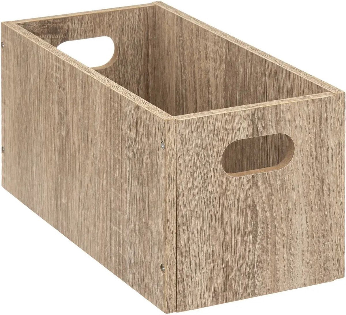 3 stuks opbergmand/kastmand in het lichtbruin, gemaakt van hout, met afmetingen van 31 x 15 cm. De opbergbox heeft een handvat aan de voorkant, voor makkelijk uit de kast pakken/schuiven. De manden zijn zeer geschikt voor bijvoorbeeld in een kinderkamer of een vakkenkast. Wanneer u de mand niet nodig heeft kunt u deze inklappen en opbergen. U dient de mand zelf nog in elkaar te zetten (uit vouwen en vast zetten), schroefjes worden meegeleverd. Voor meer formaten van deze manden zoekt u op de term: mixmodullichtbruinwood. Afmeting: ca. 31 x 15 x 15 cm. Inhoud: ca. 7 liter. Materiaal: mdf/hout.