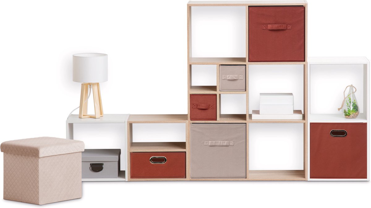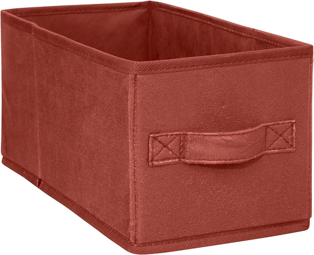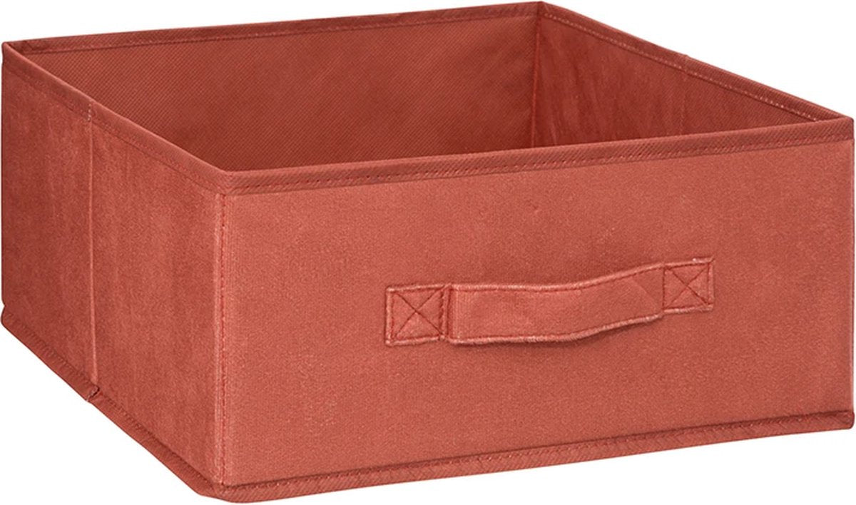 Opbergmand/kastmand in de kleur Bordeaux rood voor diverse soorten spullen. Past perfect in de meeste kasten systemen. De opbergbox/mand heeft een handvat aan de voorkant, voor het makkelijk uit de kast pakken/schuiven. De zijwanden zijn verstevigd met 2mm dik karton voor extra stabiliteit en daardoor zijn de manden zeer geschikt voor bijvoorbeeld in een kinderkamer. of een vakkenkast. Wanneer u de mand niet nodig heeft kunt u deze makkelijk opvouwen en opbergen. Afmeting: ca. 31 x 31 x 31 cm. Inhoud: ca. 29 liter. Materiaal: karton/kunststof.