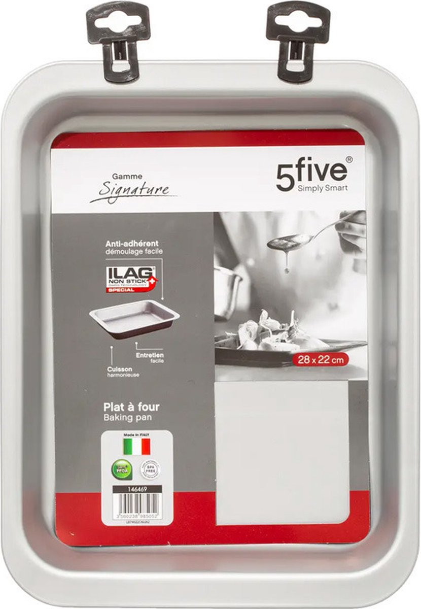 5Five Ovenschaal of bakvorm/diepe bakplaat Backery Pro - metaal - anti-aanbak laag - zwart - 28 x 22 cm