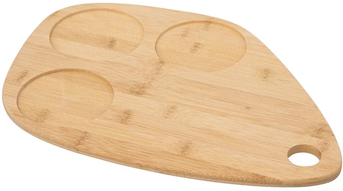 Serveerplank van bamboe van 35 x 24 cm met 4x luxe hapjes/saus/tapas schaaltjes in een de kleur zwart. De schaaltjes... Lees meer