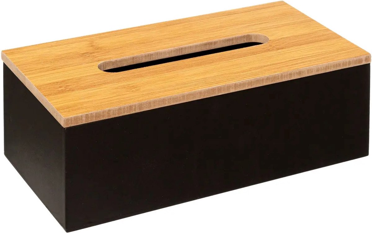 Luxe tissuedoos van hout voor in iedere ruimte in huis. Met scharnierdeksel te openen en geschikt voor standaardformaat tissueboxen. Deze tissuedoos is gemaakt van MDF hout. Het deksel is houtkleurig en de tissuebox zelf heeft een zwarte kleur. De tissuedoos van hout is geschikt voor standaardformaat tissueboxen en is 25 cm breed, 13 cm diep en 9 cm hoog. Tissuedoos voor in iedere ruimte Het is altijd handig om op meerdere plekken in huis een tissuedoos te hebben staan. Dan hoef je nooit meer het hele huis rond te lopen op zoek naar een doekje. Maar de tissueboxen uit de supermarkt hebben vaak een drukke print die niet altijd mooi in je interieur staan en daarom snel voor slordigheid zorgen. Met deze tissuebox hout van Five®