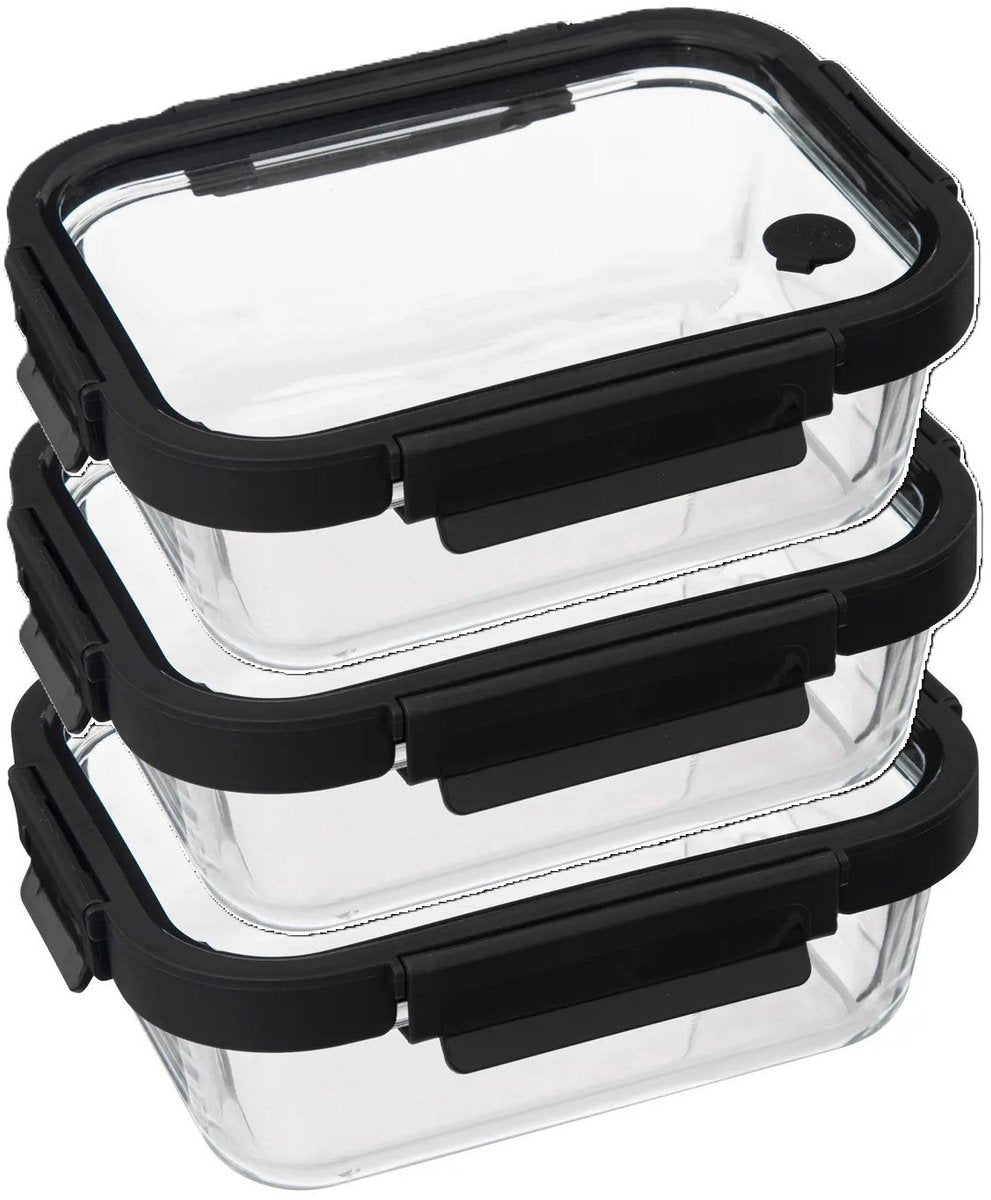 3x dit veelzijdige vershoudbakje van glas is de ideale oplossing om voedsel langer vers te houden. Het bakje is gemaakt van glas en dankzij het transparante ontwerp kun je altijd snel zien wat erin zit. De afmetingen van 21 x 17 x 7 cm bieden voldoende ruimte voor lunches, snacks of restjes. De luchtdichte clips zorgen ervoor dat de inhoud veilig en vers blijft, zonder lekken of morsen. Perfect voor onderweg, naar het werk, school of voor het bewaren van voedsel in de koelkast of vriezer. Dit vershoudbakje/lunchbox is een must-have voor iedereen die graag georganiseerd is en voedsel langer vers wil houden. Met zijn luchtdichte sluiting, compacte formaat en duurzame glazen constructie, biedt dit bakje een stijlvolle en praktische oplossing voor al je bewaar- en maaltijdvoorbereidingsbehoeften. Afmeting: ca. 21 x 17 x 7 cm. Inhoud: ca. 900 ml. Met kunststof deksel. In het zwart en transparant.