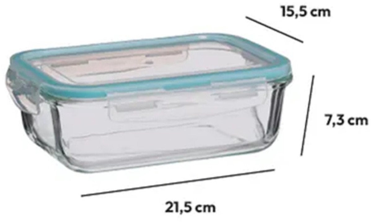 Dit veelzijdige vershoudbakje van glas is de ideale oplossing om voedsel langer vers te houden. Het bakje is gemaakt van glas en dankzij het transparante ontwerp kun je altijd snel zien wat erin zit. De afmetingen van 21 x 15 x 7 cm bieden voldoende ruimte voor lunches, snacks of restjes. De luchtdichte clips zorgen ervoor dat de inhoud veilig en vers blijft, zonder lekken of morsen. Perfect voor onderweg, naar het werk, school of voor het bewaren van voedsel in de koelkast of vriezer. Dit vershoudbakje/lunchbox is een must-have voor iedereen die graag georganiseerd is en voedsel langer vers wil houden. Met zijn luchtdichte sluiting, compacte formaat en duurzame glazen constructie, biedt dit bakje een stijlvolle en praktische oplossing voor al je bewaar- en maaltijdvoorbereidingsbehoeften. Afmetingen: ca. 21 x 15 x 7 cm. Inhoud: ca. 1180 ml. Met kunststof deksel.