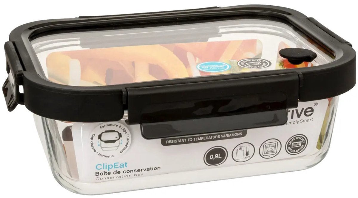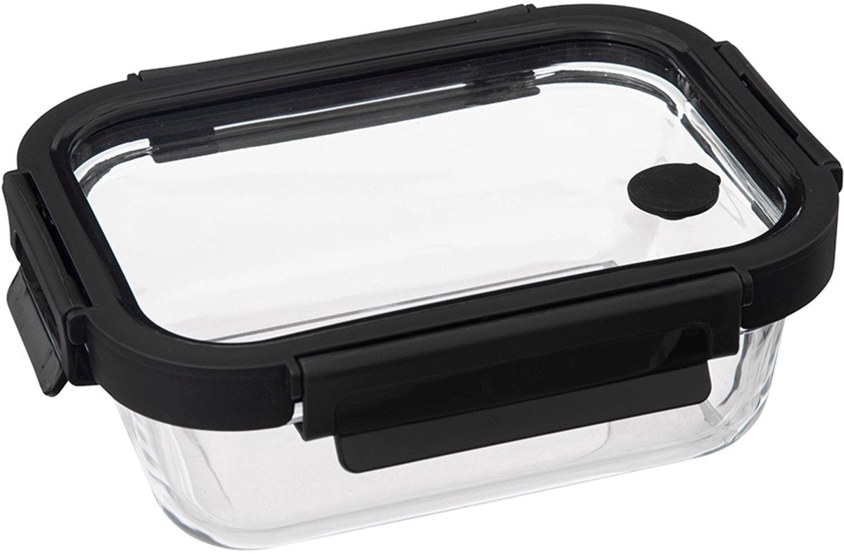 Dit veelzijdige vershoudbakje van glas is de ideale oplossing om voedsel langer vers te houden. Het bakje is gemaakt van glas en dankzij het transparante ontwerp kun je altijd snel zien wat erin zit. De afmetingen van 21 x 17 x 7 cm bieden voldoende ruimte voor lunches, snacks of restjes. De luchtdichte clips zorgen ervoor dat de inhoud veilig en vers blijft, zonder lekken of morsen. Perfect voor onderweg, naar het werk, school of voor het bewaren van voedsel in de koelkast of vriezer. Dit vershoudbakje/lunchbox is een must-have voor iedereen die graag georganiseerd is en voedsel langer vers wil houden. Met zijn luchtdichte sluiting, compacte formaat en duurzame glazen constructie, biedt dit bakje een stijlvolle en praktische oplossing voor al je bewaar- en maaltijdvoorbereidingsbehoeften. Afmeting: ca. 21 x 17 x 7 cm. Inhoud: ca. 900 ml. Met kunststof deksel. In het zwart en transparant.