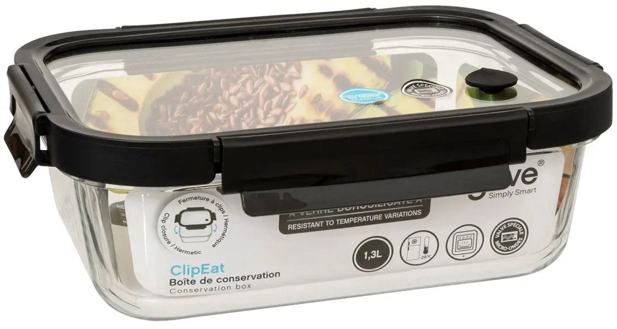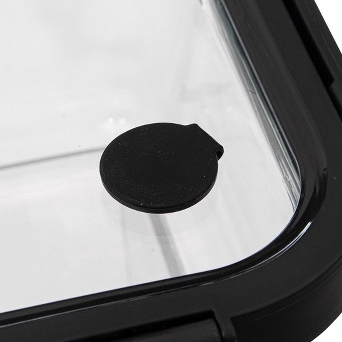 Dit veelzijdige vershoudbakje van glas is de ideale oplossing om voedsel langer vers te houden. Het bakje is gemaakt van glas en dankzij het transparante ontwerp kun je altijd snel zien wat erin zit. De afmetingen van 23 x 18 x 8 cm bieden voldoende ruimte voor lunches, snacks of restjes. De luchtdichte clips zorgen ervoor dat de inhoud veilig en vers blijft, zonder lekken of morsen. Perfect voor onderweg, naar het werk, school of voor het bewaren van voedsel in de koelkast of vriezer. Dit vershoudbakje/lunchbox is een must-have voor iedereen die graag georganiseerd is en voedsel langer vers wil houden. Met zijn luchtdichte sluiting, compacte formaat en duurzame glazen constructie, biedt dit bakje een stijlvolle en praktische oplossing voor al je bewaar- en maaltijdvoorbereidingsbehoeften. Afmeting: ca. 23 x 18 x 8 cm. Inhoud: ca. 1300 ml. Met kunststof deksel. In het zwart en transparant.