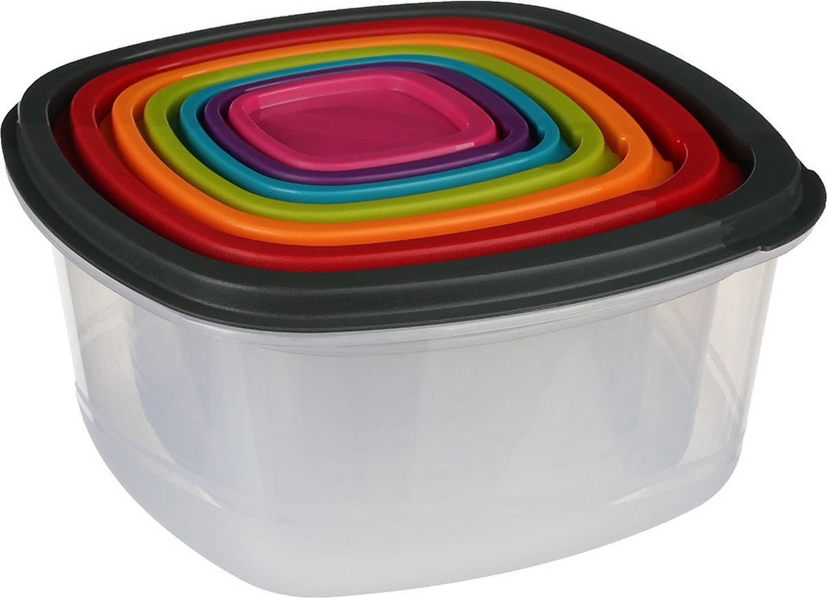 De bakjes zijn stackable en nestable. Hierdoor bespaar je ruimte in de koelkast, vriezer of voorraadkast. Bovendien schuiven ze door de vormgeving niet van elkaar af.