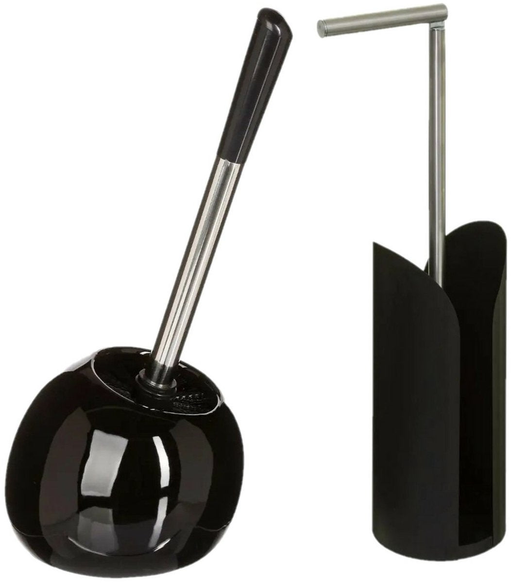 WC-/toiletborstel met toiletrolhouder set in het zwart. WC-/toiletborstel met houder rond zwart glans keramiek 36 cm. Staande wc/toiletrolhouder zwart 59... Lees meer