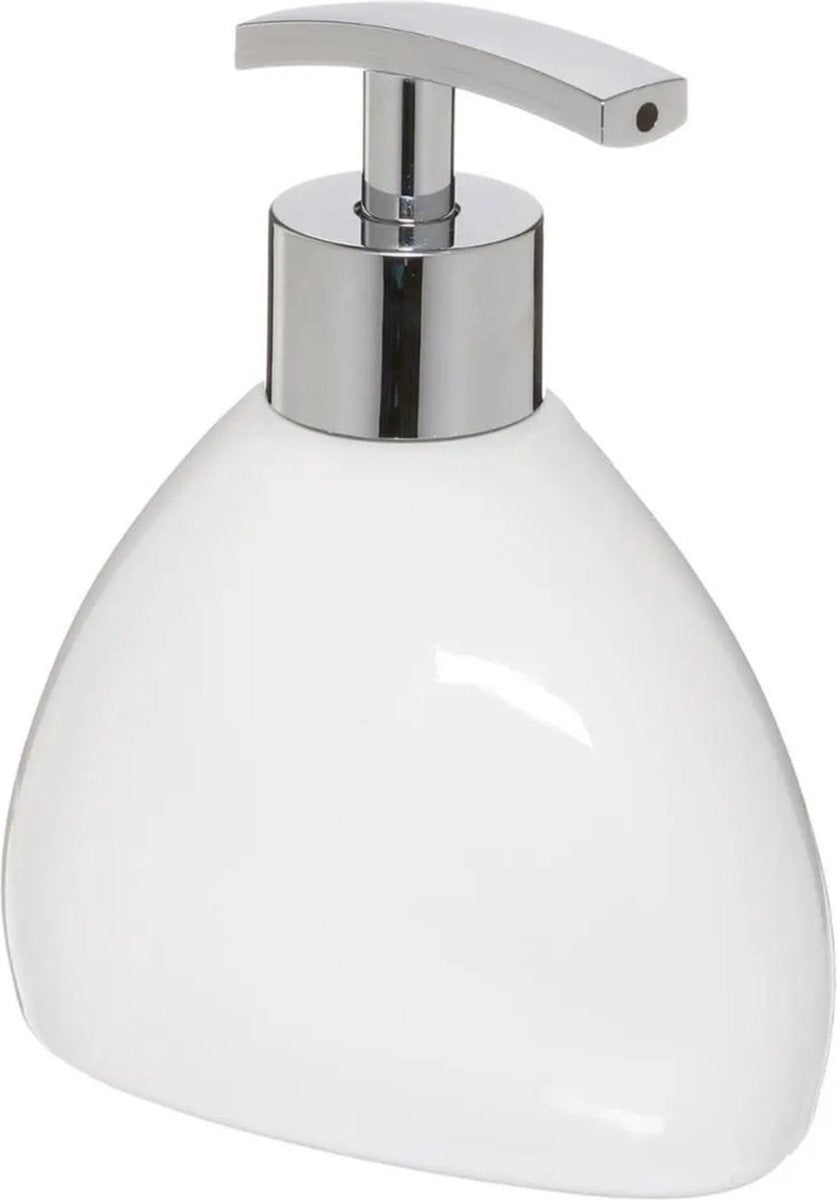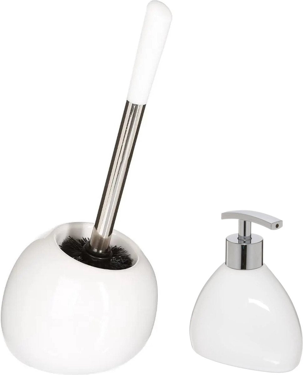 WC-/toiletborstel met houder in het wit met keramiek zeeppompje 300 ml. Het bovenste deel van de wc-borstelsteel is van metaal... Lees meer
