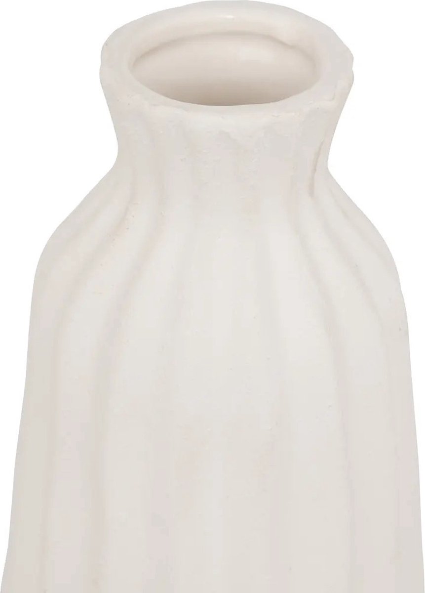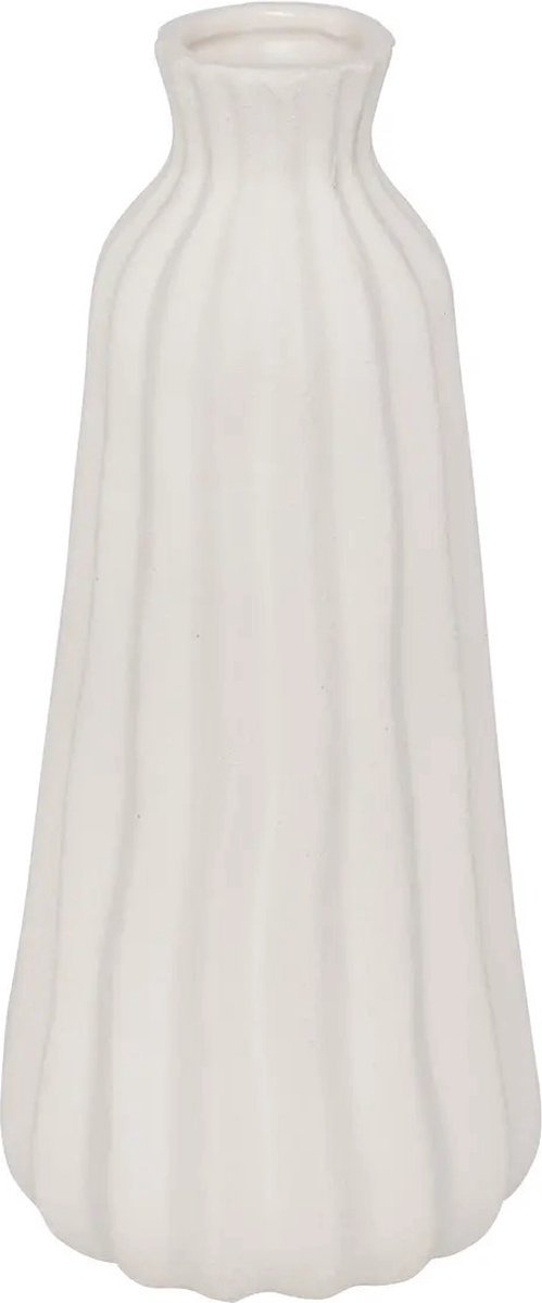 Bloemenvaas/siervaas Antique Roman, in de kleur mat creme wit, gemaakt met relief strepen, van sierlijk gevormd keramiek. Met smalle opening voor de stelen. Formaat: 13 x 30 cm. Een zeer stijlvolle en decoratieve vaas die een aanvulling zal zijn op ieder klassiek en modern interieur. Met een gevoel van de oudheid, toch een moderne uitstraling hebben. Deze prachtige vaas is uitstekend te gebruiken voor (droog)bloemen, kleine boeketten en losse takken maar ook geschikt als decoratief object voor binnen.