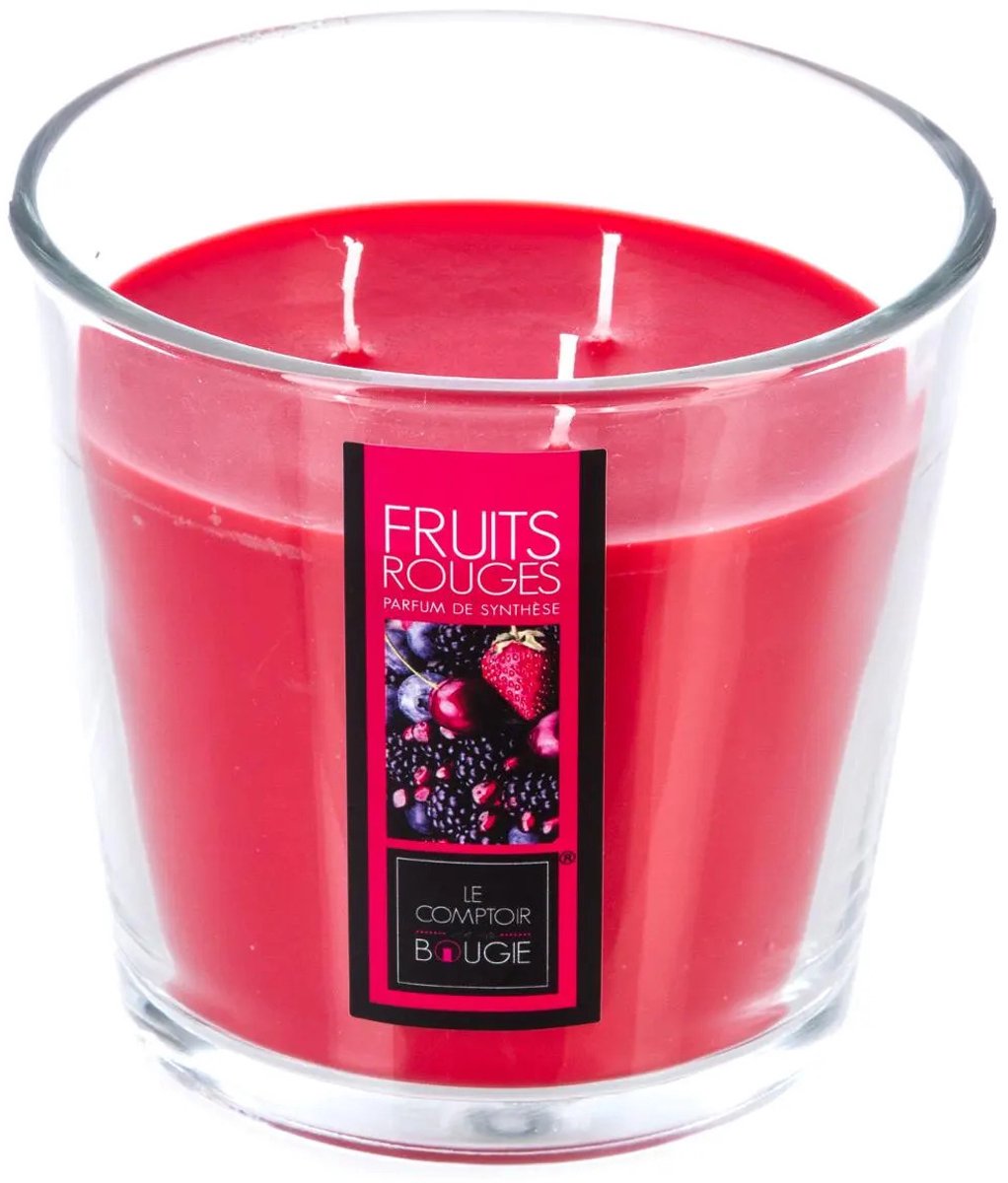 2x creëer een warme en uitnodigende sfeer in huis met deze grote geurkaars in het heerlijke rood fruit aroma in de kleur rood. Gegoten in een transparante glazen houder, met 3 lonten, verspreidt deze kaars een geur die je zintuigen prikkelt. De geur van rood fruit in de parfumerie roept beelden op van zoete, sappige aroma's die doen denken aan zomerse vruchten. Denk aan aardbeien, frambozen, bramen, kersen, en rode bessen. Deze geuren worden vaak omschreven als vrolijk, levendig en zinnelijk.