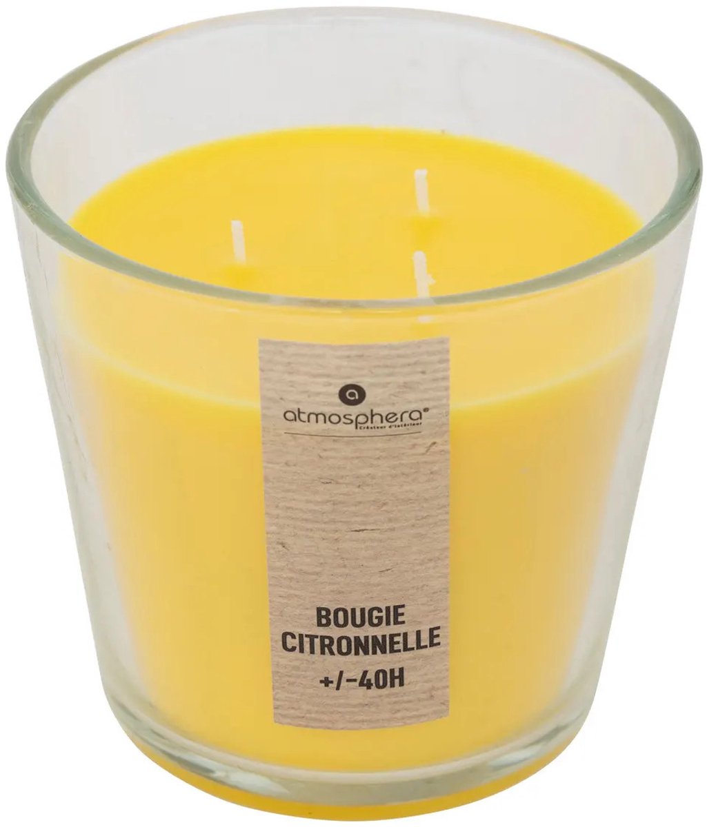 Creëer een warme en uitnodigende sfeer in huis met deze grote geurkaars in het heerlijke citronella aroma in de kleur geel. Gegoten in een transparante glazen houder, met 3 lonten, verspreidt deze kaars een geur die je zintuigen prikkelt. Citronella heeft een sterke citroen of citrus geur.