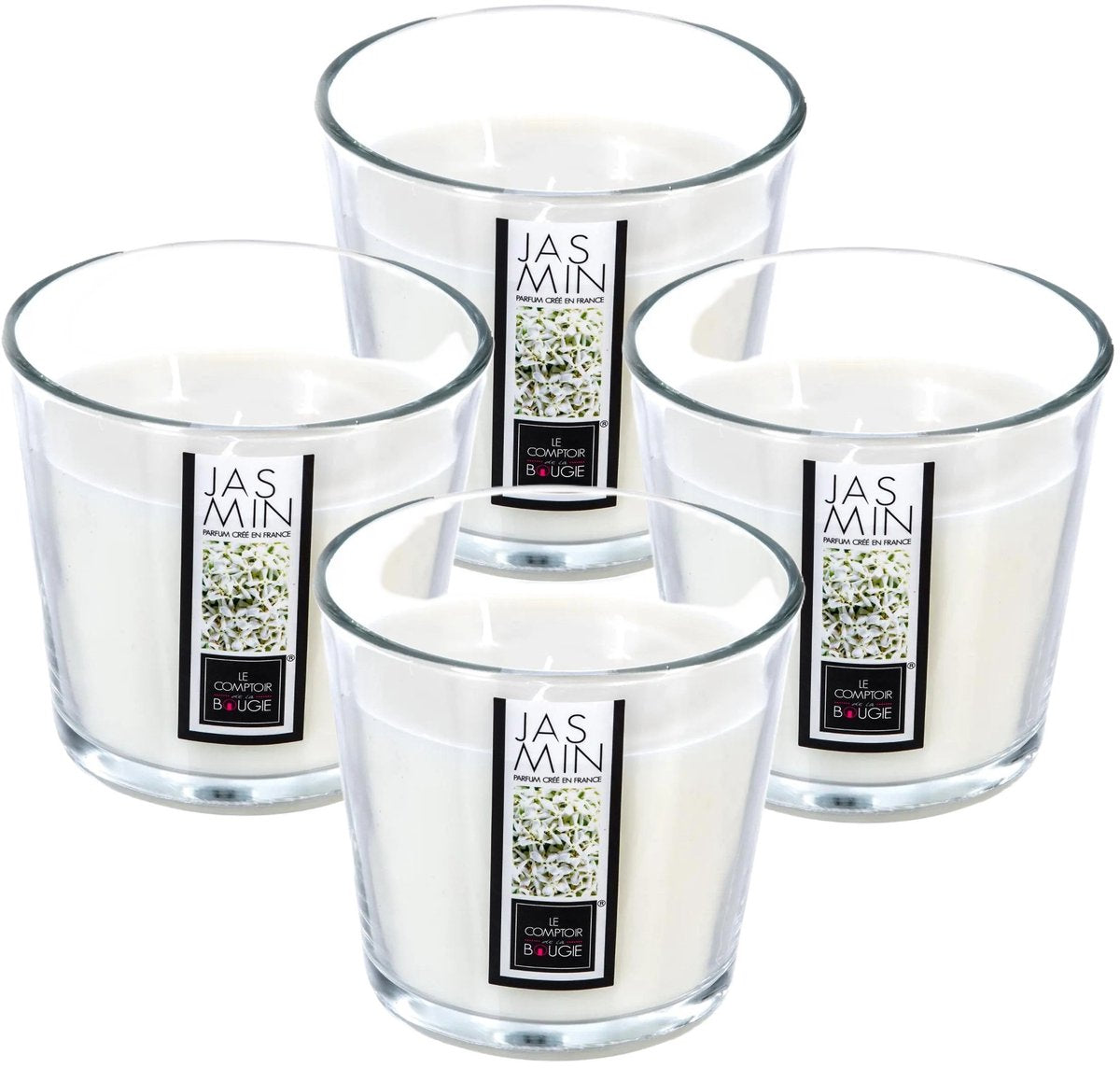 Creëer een warme en uitnodigende sfeer in huis met deze grote geurkaars in het heerlijke jasmijn aroma in de kleur wit. Gegoten in een transparante glazen houder, met 3 lonten, verspreidt deze kaars een geur die je zintuigen prikkelt. De geur van jasmijn wordt vaak omschreven als zoet, bloemig, en bedwelmend. Het kan ook een vleugje fruitig en kruidig hebben, met een rijke en intense kwaliteit die soms als dierlijk of muskusachtig wordt ervaren.