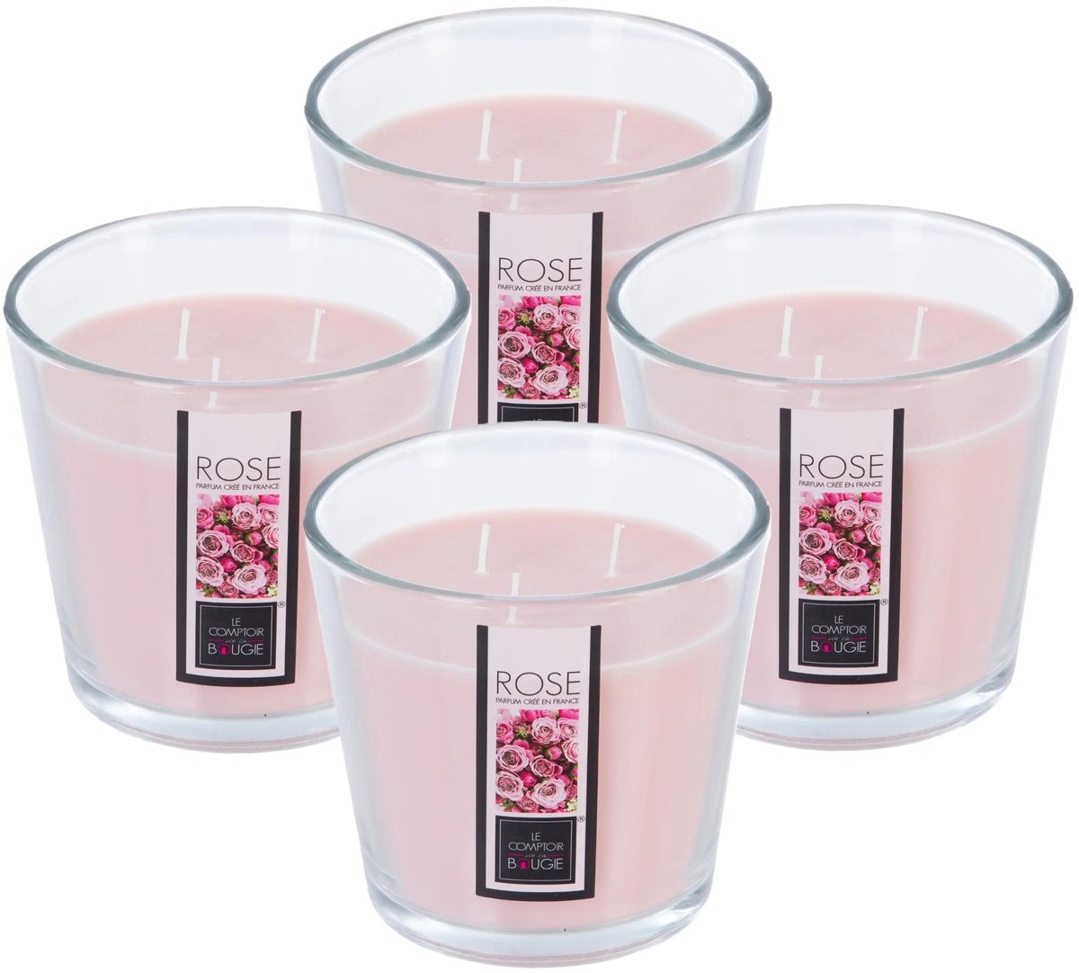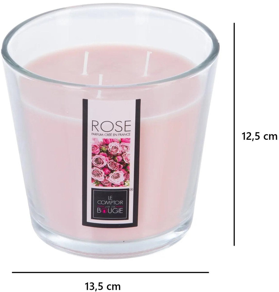 Creëer een warme en uitnodigende sfeer in huis met deze grote geurkaars in het heerlijke rozen bloemen aroma in de kleur lichtroze. Gegoten in een transparante glazen houder, met 3 lonten, verspreidt deze kaars een geur die je zintuigen prikkelt. De geur van rozen wordt vaak geassocieerd met liefde en wordt veel gebruikt in parfums.