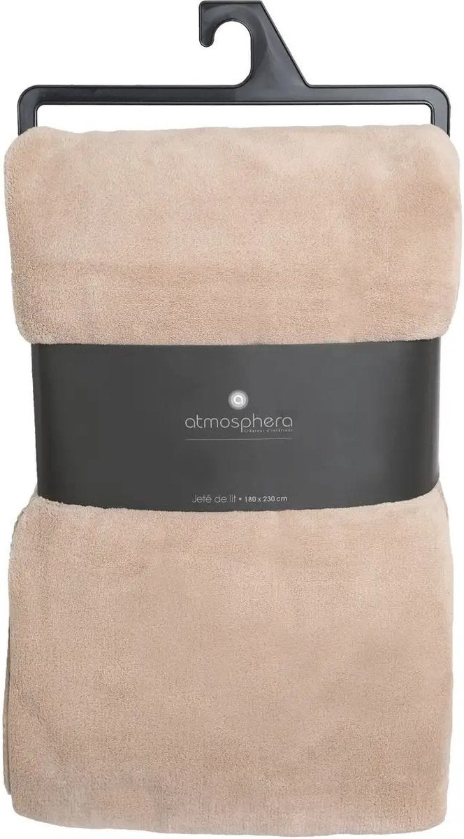 Atmosphera Fleece deken of plaid harig - 2x - beige - 180 x 230 cm - polyester - Bankdeken - Fextra groot fleece plaid