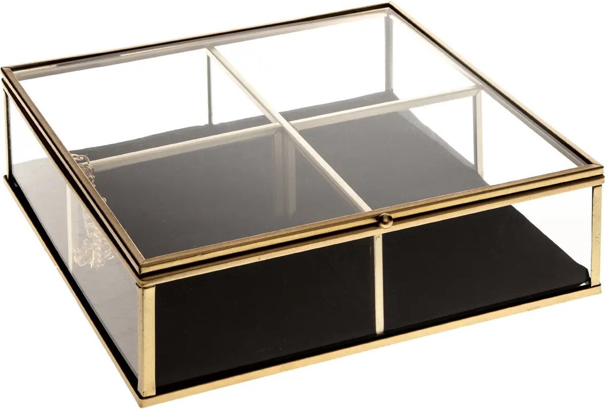 Sorteer je sieraden in dit glazen sieradenkistje van Atmosphera. Eenvoudig design met gouden frame en zwarte inzet. Deze glazen box... Lees meer