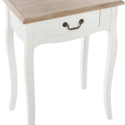 Dankzij de Franse ontwerpers die creëren voor het merk Atmosphera Créateur d 'Intérieur, is deze witte ladekast een uiterst flexibel en veelzijdig slaapkamermeubel. Het kan met succes functioneren in je huis als nachtkastje of kleine kaptafel. Er is ook niets dat je tegenhoudt om deze houten tafel te gebruiken als praktische tafel voor de logeerkamer of de gang. De kast is gestileerd als een retro tafel. De zorgvuldige afwerking, de fijne ruwe materialen en de subtiele en neutrale kleuren maken er een zeer elegant en zeer decoratief meubelstuk van. Met al deze voordelen is het ook een nachtkastje met zeer praktische kwaliteiten. Dankzij dit nachtkastje heb je altijd een plek bij de hand om je bril, je favoriete lectuur of een wekker neer te leggen, en de lade helpt je om alle accessoires die je nodig hebt in je slaapkamer te plaatsen. Deze smaakvolle witte kast is gemaakt van hoogwaardige, zeer duurzame grondstoffen. De tafel heeft een sterke en stabiele constructie, gebaseerd op vier stevige poten.