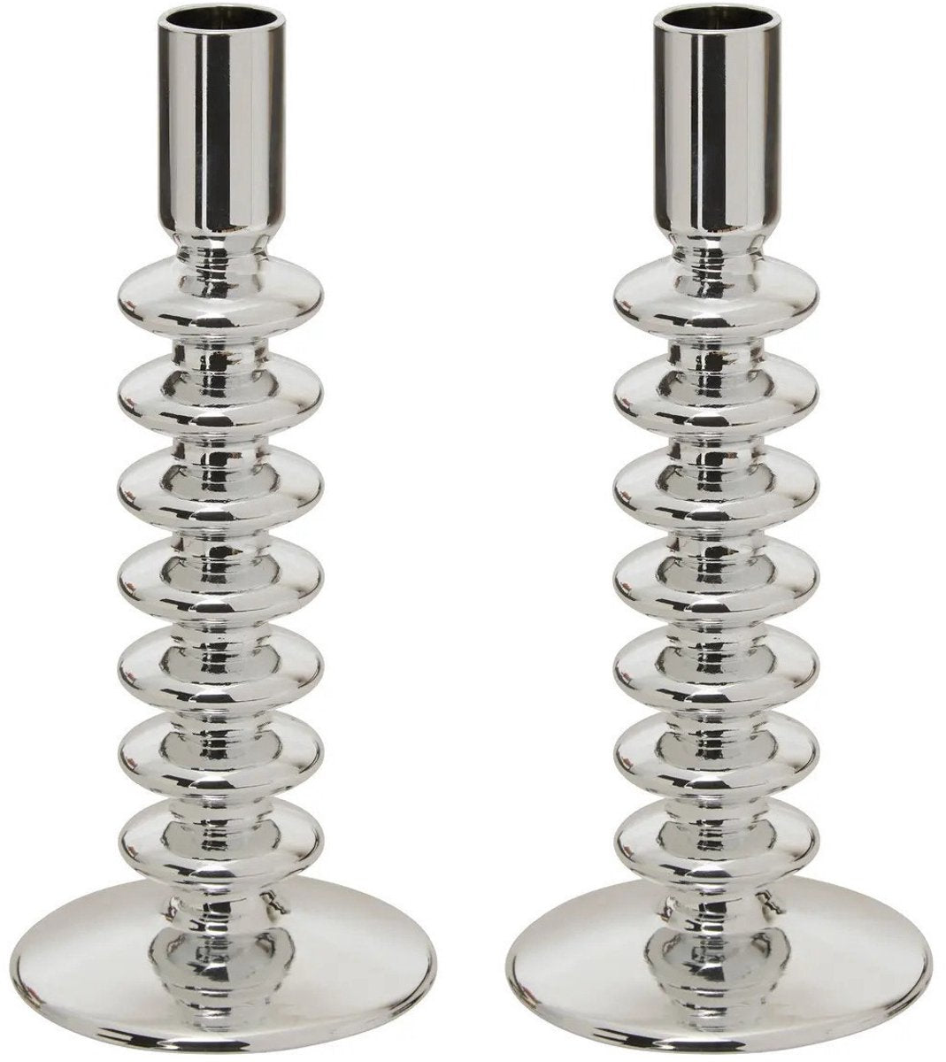 Atmosphera kaarsen kandelaar - 2x - decoratief glas - dinerkaarsen - zilver - D9 x H22 cm