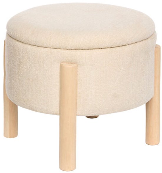 Atmosphera - Opbergkruk Elki Ø 45.5 cm Wit Chenille - 37 cm Hoog - met opbergruimte - Poef - Zitkrukje - Bijzettafel - Zitpoef