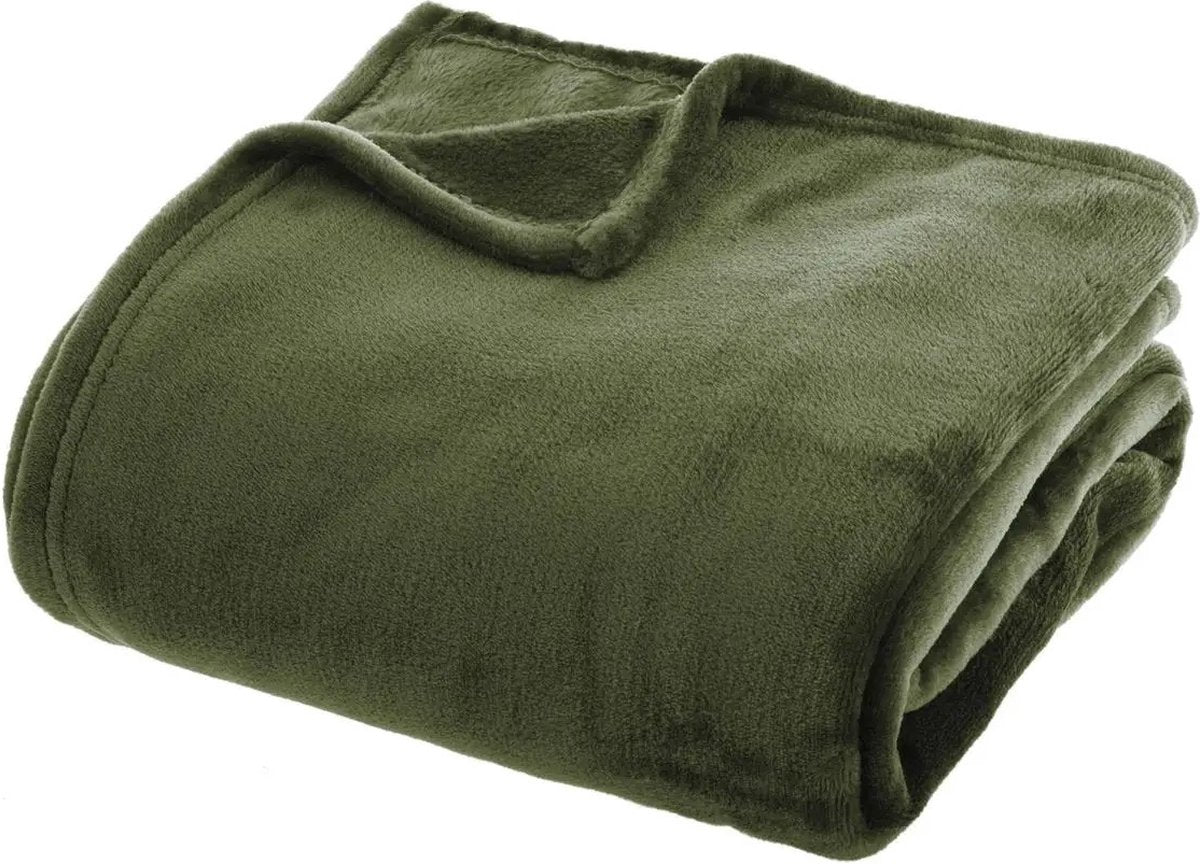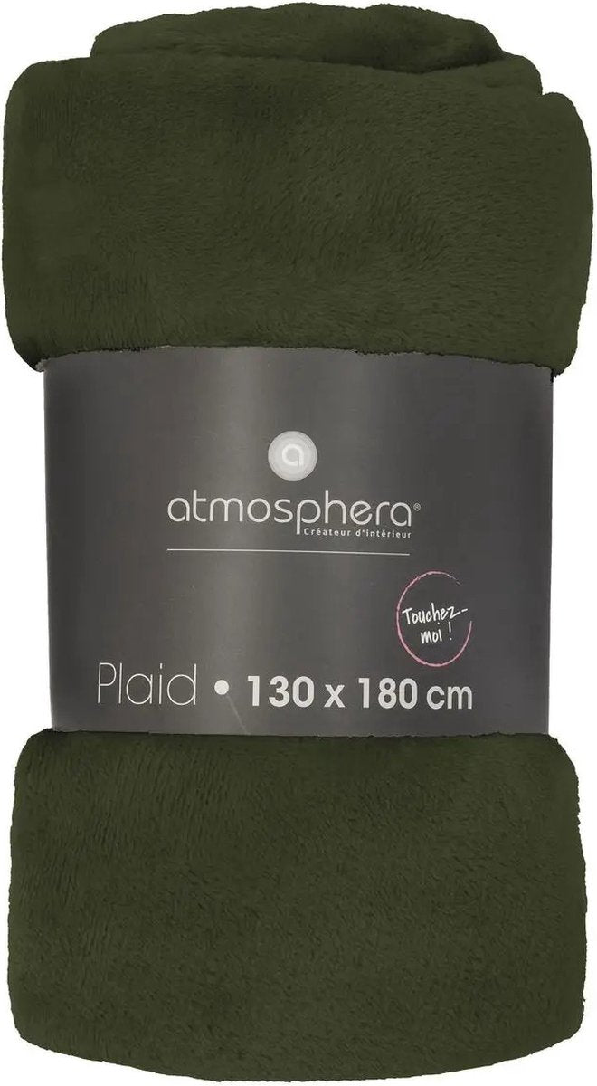 Atmosphera Plaid deken - 2x - olijfgroen - polyester - 130 x 180 cm - Bankdeken - Fleece plaid