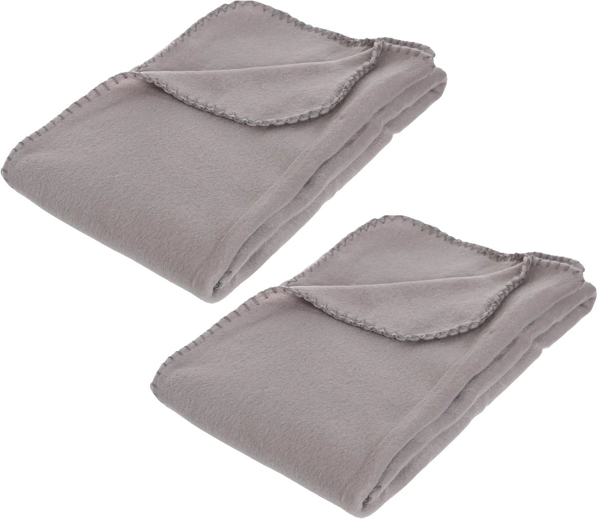 2x polar Fleece dekens/fleece plaid kortharig in de kleur grijs, gemaakt van polyester. Een rechthoekige zachte en warme deken voor op de bank of als extra dekentje op bed. Afmetingen: ca. 125 x 150 cm. Materiaal: 100% fleece microvezel polyester. Wasvoorschrift: wasmachine/droger bestendig, niet strijken. Dit is een set met 2 dekens.