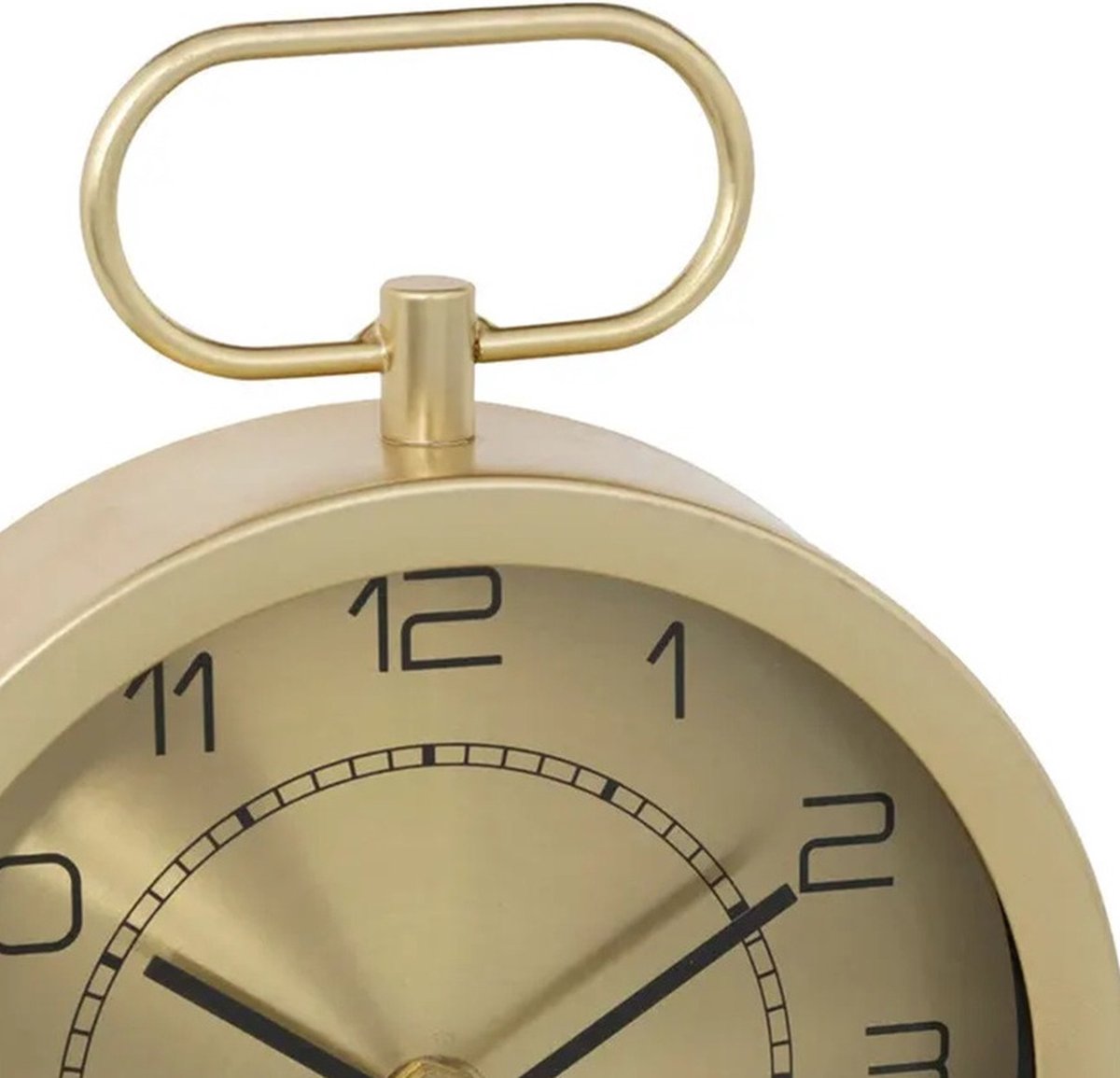 Tafelklok staand model Dorado gemaakt van metaal en glas. Kleur: goud. Afmetingen ongeveer: 15 x 4 x 19 cm. Aantal benodigde batterijen: 1x AA, niet inbegrepen. Staande klokken voor in de woonkamer, kantoor of slaapkamer. Robuuste uitstraling. Moderne look. Een absolute verrijking van uw kantoor of huis interieur.