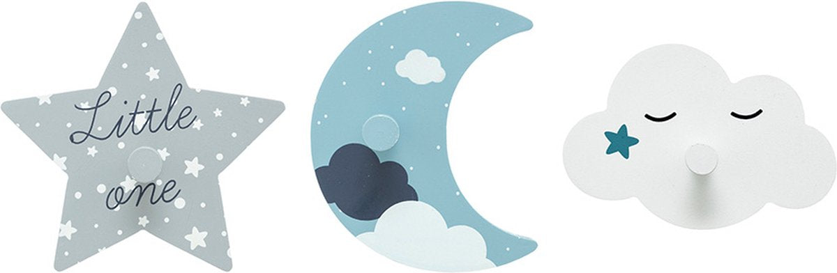 Atmosphera Wandhaken kinderkamer 3 stuks blauw