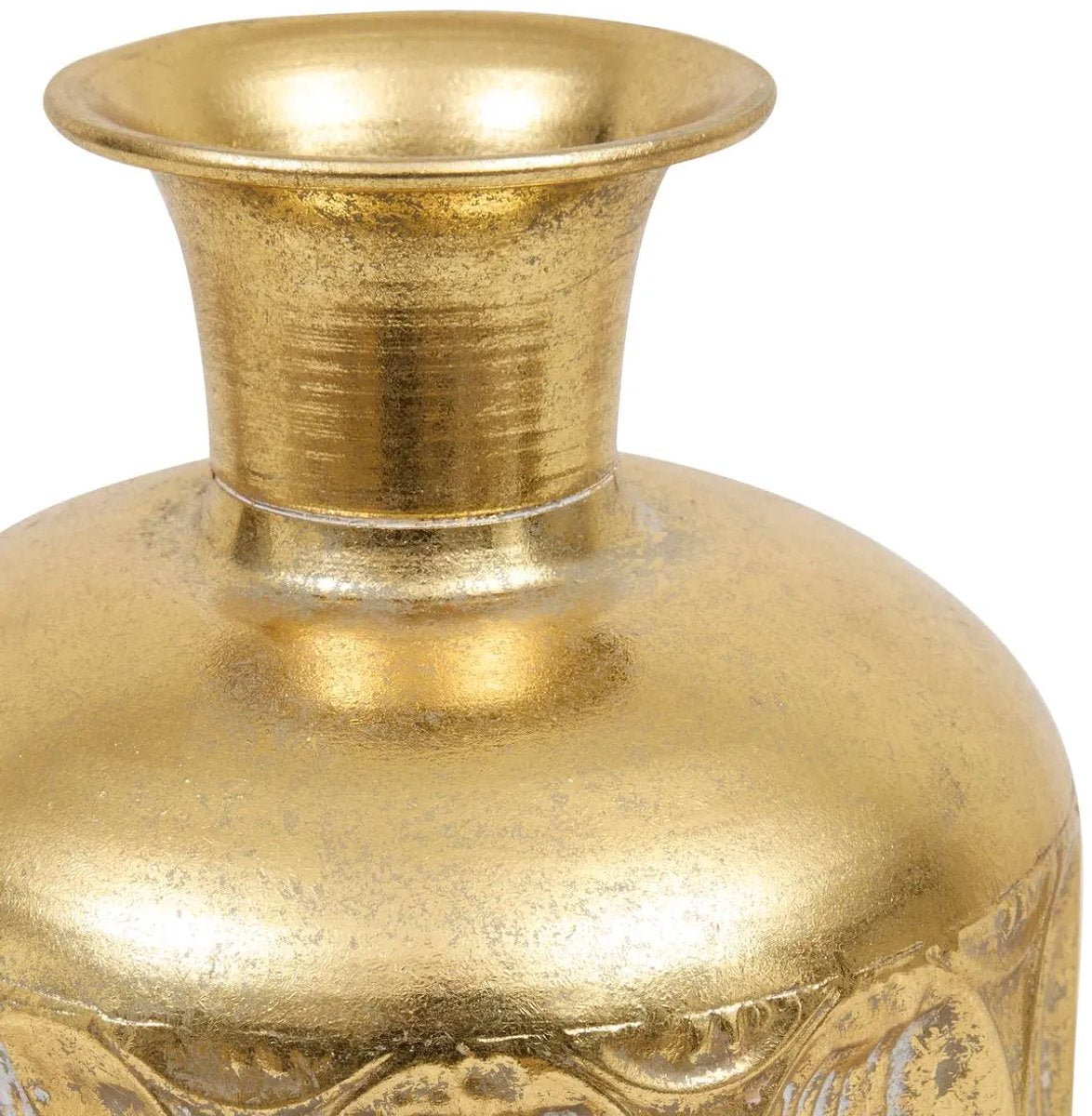 De Belli Atmosphera vaas in goudkleurig gietijzer is een decoratief hoogtepunt voor elk interieur. Met zijn nostalgische design en rijk gedetailleerde, gestreepte structuur brengt deze vaas poëzie en karakter in uw huis. De cilindrische vorm met smalle hals benadrukt de schoonheid van uw bloemstukken en creëert een harmonieus geheel met houten of rieten meubels.