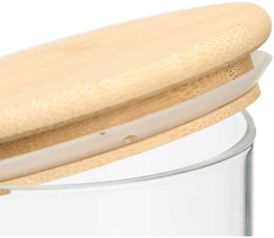 Bewaarpot - Glazen Voorraadpot - Borosilicaat Glas Bewaarpot met Bamboe Deksel - Keuken Voorraadbus - Transparante Voorraadpot Groot - Pasta Rijst Muesli - 1.8L - 10 x 10 x 25 cm - Transparant & Bamboe