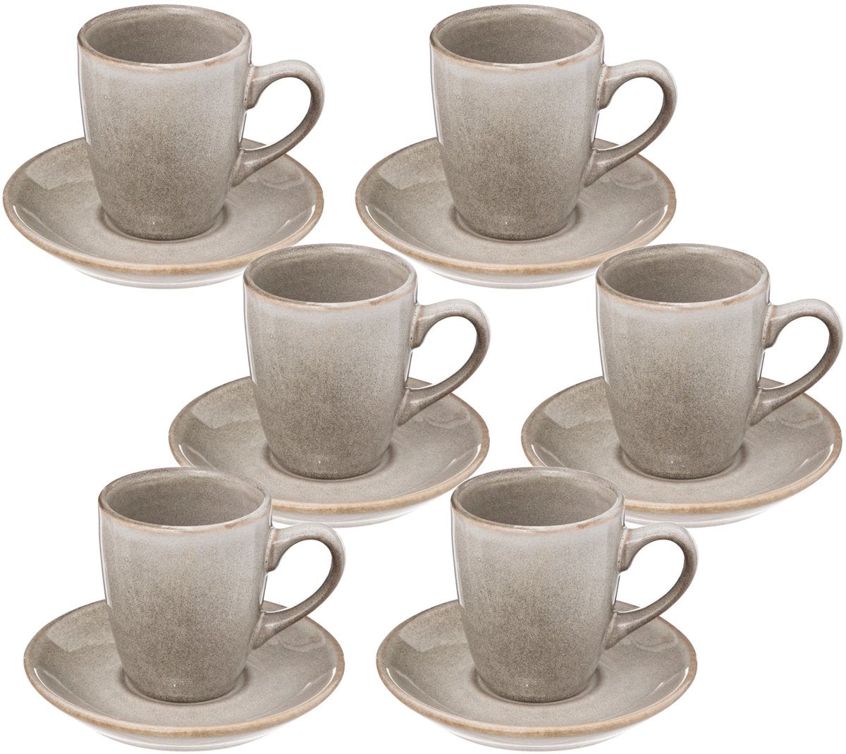 Breng een vleugje elegantie aan je tafel met de Callie Taupe Kop en Schotel. Deze set van 6 kopjes met bijbehorende schotels is gemaakt van duurzaam stoneware, wat zorgt voor een luxe uitstraling en een stevige kwaliteit. De tijdloze beige (taupe) kleur past perfect bij elk interieur, of het nu modern of klassiek is.