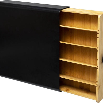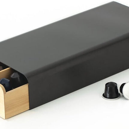 Capsule houder van metaal zwart en bamboe naturel | Geschikt voor koffie cups van Nespresso, Vertuo, Dolce Gusto