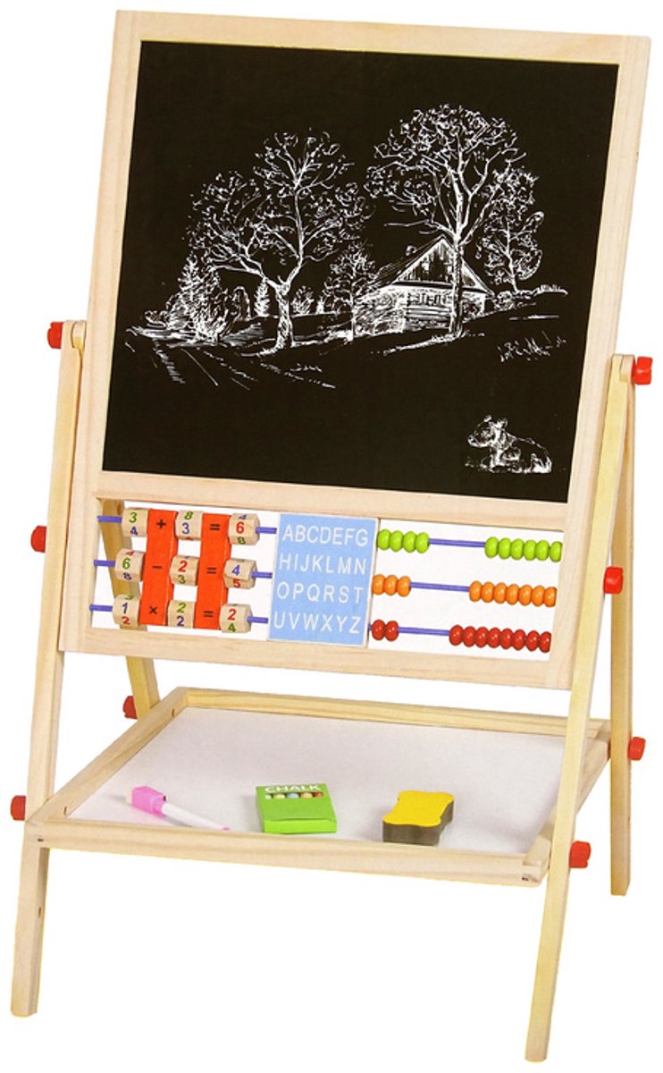 Het Dubbelzijdige Educatieve Bord is een veelzijdig ontwikkelingsspeelgoed voor kinderen vanaf 3 jaar. Dit stevige houten bord biedt twee verschillende speel- en leeromgevingen dankzij het handige draaimechanisme. Aan de ene kant vindt u een zwart schoolbord om met krijt op te tekenen, aan de andere kant een wit whiteboard voor stiften.