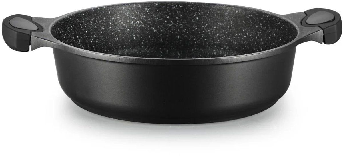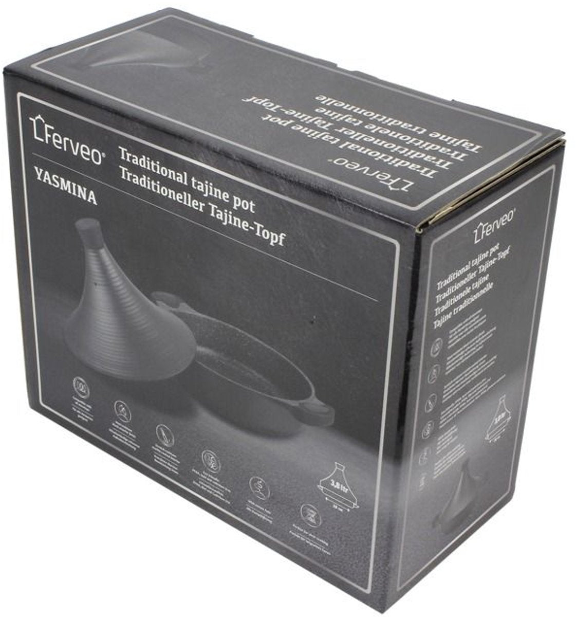 Ontdek de rijke smaken van de Noord-Afrikaanse keuken met de Ferveo Yasmina Tajine 28 cm. Deze stijlvolle tajine is ontworpen om langzaam te garen, waardoor kruiden en specerijen de tijd krijgen om diep door te dringen in je gerechten. Het iconische conische deksel houdt de stoom vast en laat het circuleren, zodat je stoofpotten extra mals en aromatisch worden. Geschikt voor alle warmtebronnen, inclusief inductie, combineert deze tajine traditie met modern kookgemak. Voordelen • Conisch deksel zorgt voor optimale stoomcirculatie en sappige gerechten • Gemaakt van stevig gegoten aluminium voor snelle en gelijkmatige warmteverdeling • Geschikt voor alle warmtebronnen, ook inductie • Antiaanbaklaag voorkomt aanbakken en maakt schoonmaken eenvoudig • Elegant zwart design dat klassiek en modern combineert Specificaties • Diameter: 28 cm, ideaal voor 2 tot 4 personen • Materiaal: Pan van gegoten aluminium met antiaanbaklaag, deksel van keramiek • Kleur: Zwart, met een stijlvolle en tijdloze afwerking • Hoogte: Circa 23 cm inclusief deksel • Warmtebronnen: Inductie, gas, elektrisch, keramisch en halogeen Met de Ferveo Yasmina Tajine haal je de geur en smaak van authentieke stoofgerechten in huis – elke maaltijd een belevenis.