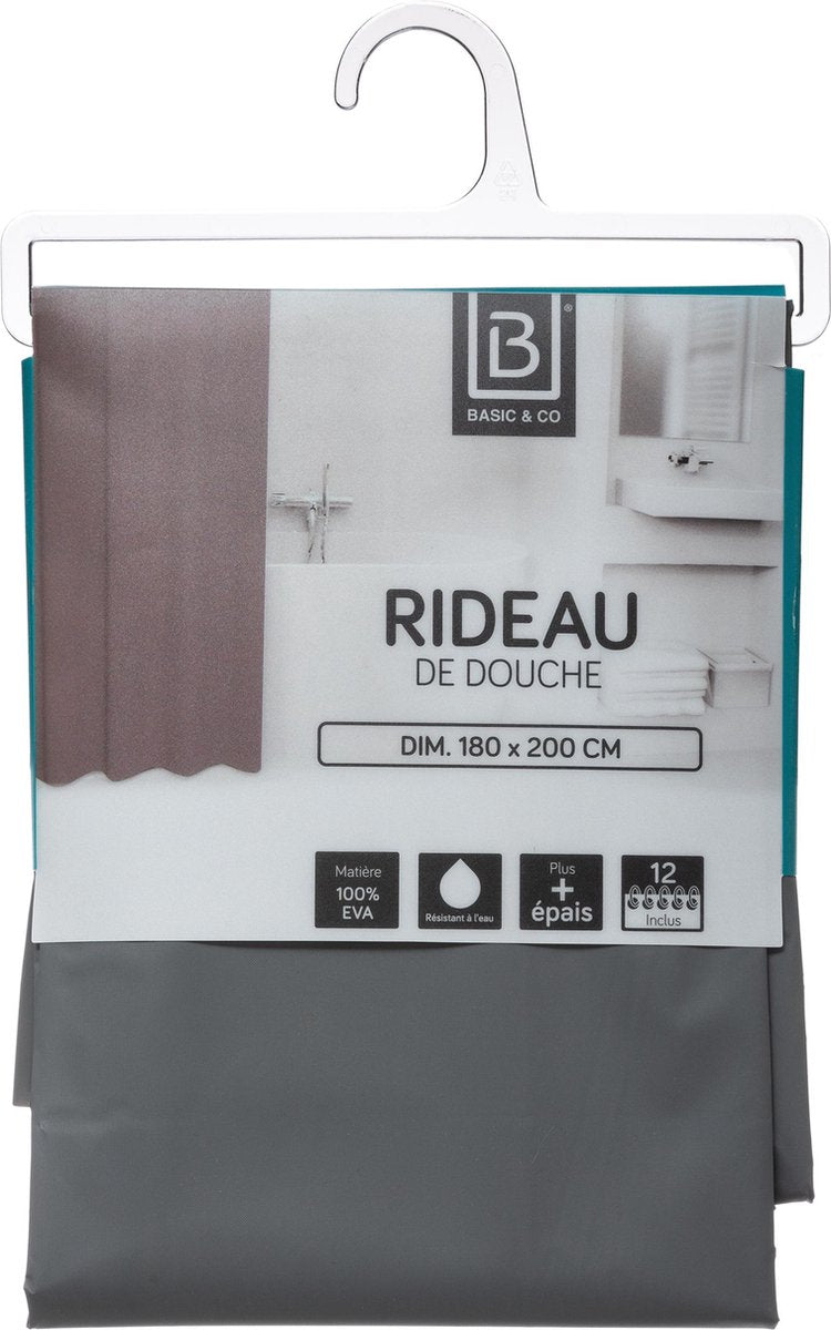 Douche gordijn van het merk Five®. Inclusief ringen.Merk: FiveKleur: GrijsAfmeting: 180x200 cmMateriaal: PEVA PlasticVoor 17:00 besteld is morgen in huis!... Lees meer