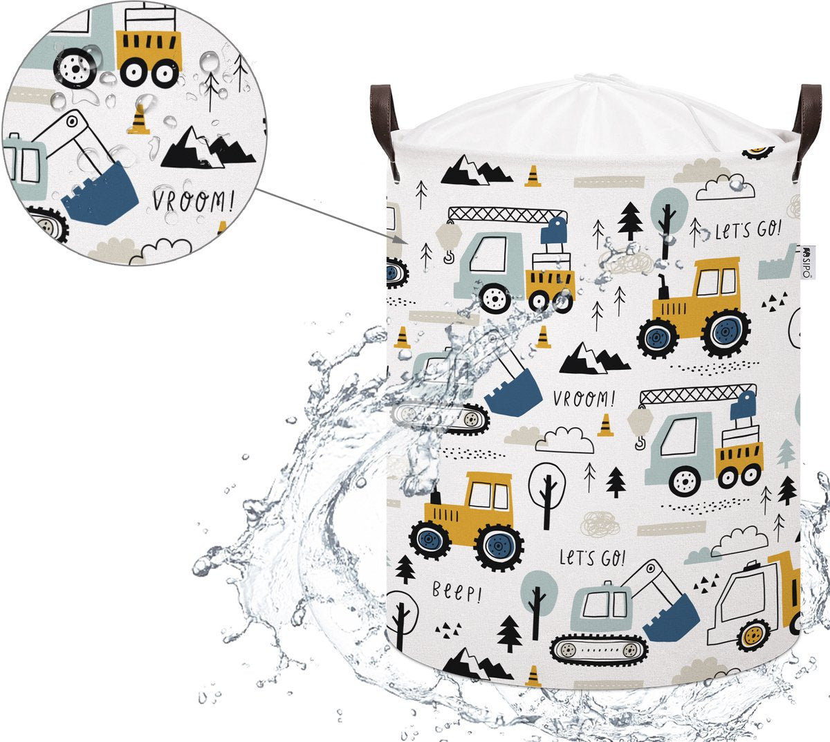 Houd de kinderkamer perfect georganiseerd met deze stoere Graafmachine speelgoedopbergmand. Met een coole print van graafmachines, tractors en takelwagens is deze opbergmand speciaal ontworpen voor jonge bouwvakkers in de dop. Deze multifunctionele mand maakt opruimen leuk en is de ideale oplossing voor het opbergen van speelgoed, knuffels of bouwblokken.