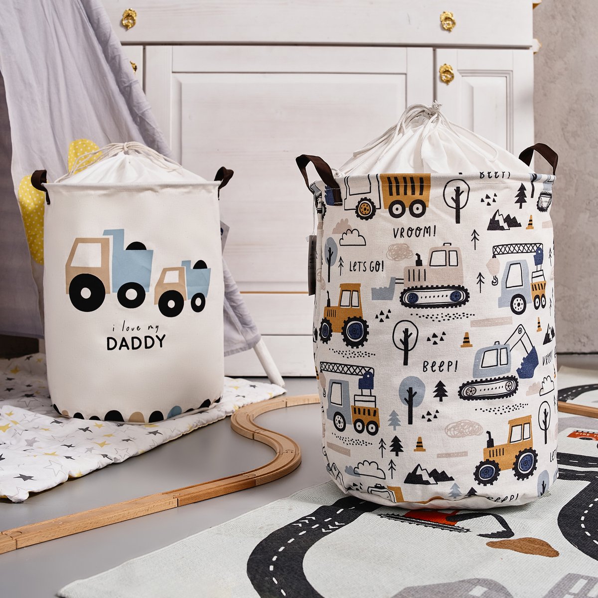 Deze veelzijdige opbergmand is perfect als speelgoedopberger voor de kinderkamer, maar functioneert ook uitstekend als wasmand. Het aantrekkelijke constructie voertuigen design moedigt kinderen aan om zelf hun speelgoed op te ruimen. Een praktische en stijlvolle oplossing voor een georganiseerde kinderkamer.