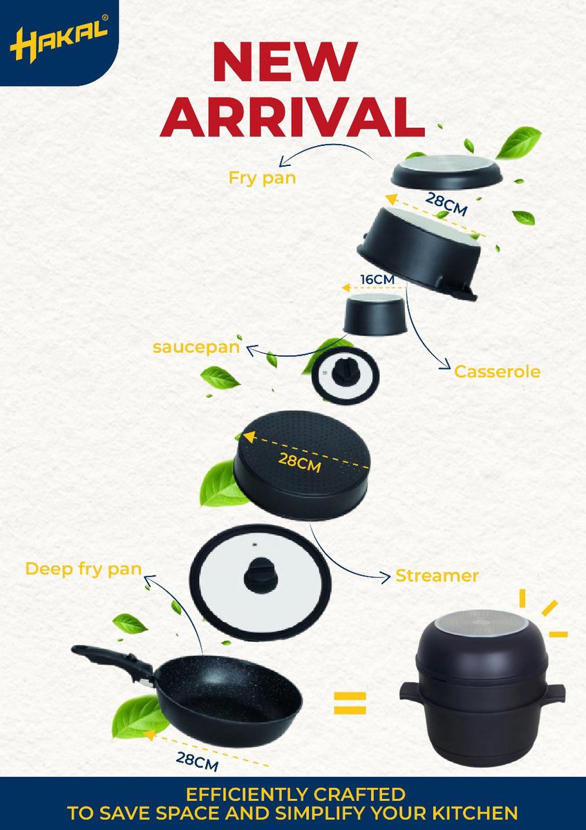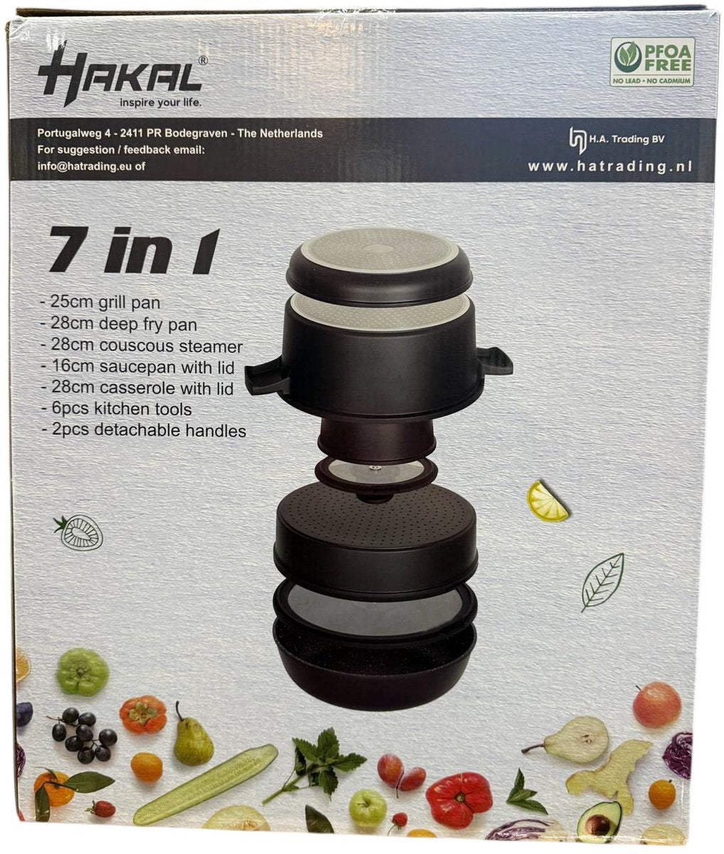 Of je nu bakt, stoomt, grilt of suddert — met de Hakal Space Saving Cookware Set heb je alles binnen handbereik voor een complete kookervaring. Perfect voor moderne keukens waar design en efficiëntie samenkomen.