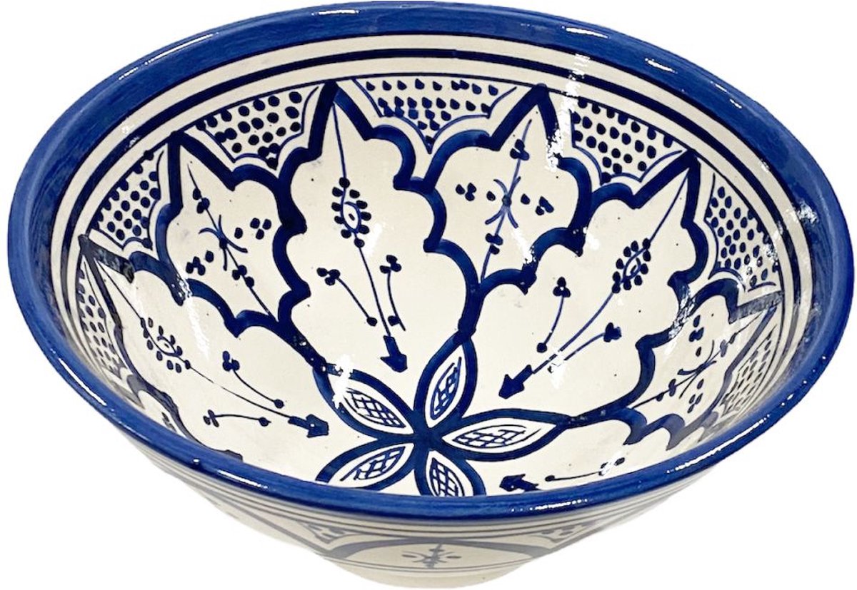 Handgemaakte en handbeschilderde authentieke blauwe Marokkaanse aardewerk kom 25 cm