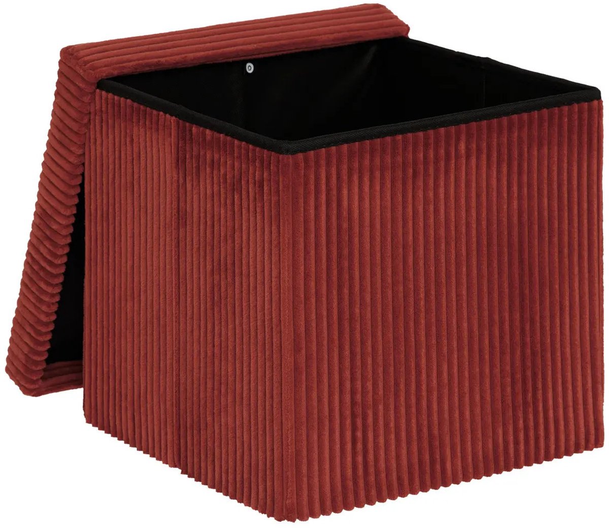 Atmosphera hocker poef Essestial Ribcord. Slim, stijlvol en opvouwbaar: deze hocker uit de Essestial Ribcord serie is dé ideale combinatie van comfort en functionaliteit. Hij biedt een royale opbergruimte voor spullen die je liever uit het zicht houdt én is in een handomdraai op te vouwen wanneer je ‘m even niet nodig hebt. De zachte polyester bekleding en strakke vormgeving maken hem tot een subtiele blikvanger in elk interieur. Perfect voor kleine woningen, studentenkamers of als extra opberger in de hal of slaapkamer. Afmeting: ca. 38 x 38 cm. Materiaal: MDF en polyester. Zitplaats met opbergruimte.