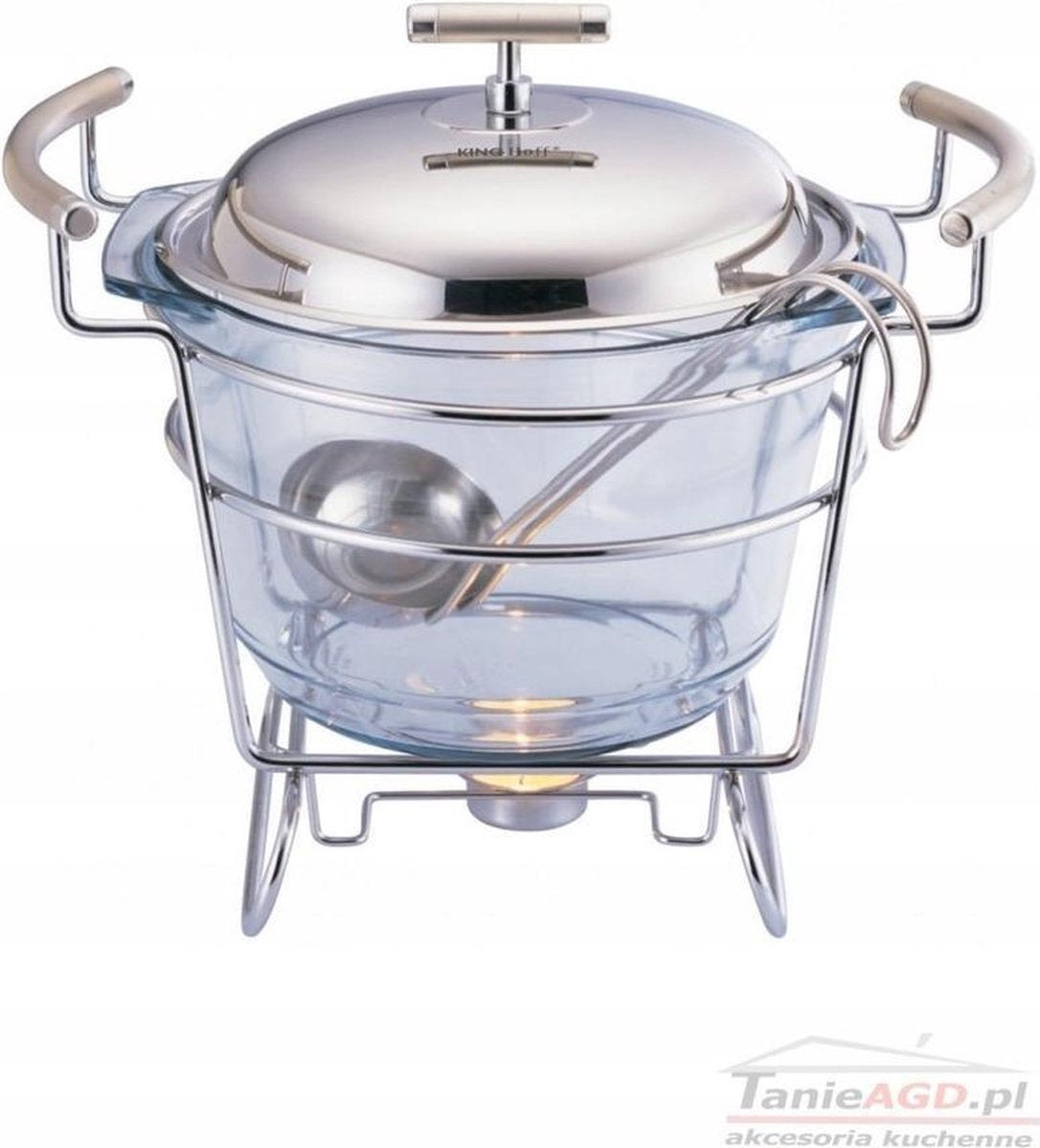 KINGHOFF's Sabinex 4,0L hittebestendige glazen tafelverwarmer U kunt het eten rechtstreeks uit de keuken op tafel zetten in een elegante braadpan met deksel. Dankzij theelichtkachels blijft het gerecht altijd warm en kunt u uw tijd besteden aan de gasten. Het vat is gemaakt van hittebestendig glas door het Franse bedrijf SABINEX. Het deksel en frame zijn gemaakt van perfect 18/8 roestvrij staal. Het gebruikte SABINEX hittebestendige glas is ontworpen om te werken in het temperatuurbereik van -25 ° / + 300 °. Alle onderdelen van de set zijn apart wasbaar, hierdoor is deze goed schoon te houden.