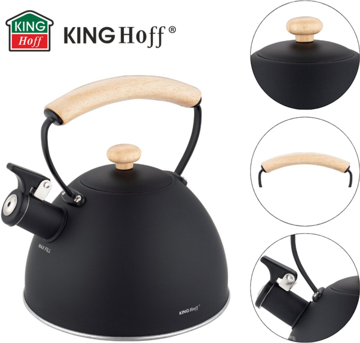 De KINGHoff KH-1999 fluitketel is een stijlvolle combinatie van modern design en natuurlijke elementen. De matte zwarte afwerking en de houten handgreep geven deze ketel een warme, minimalistische uitstraling die perfect past in zowel moderne als klassieke keukens. Met een royale inhoud van 2,5 liter is deze ketel ideaal voor grotere gezinnen, gastenverblijven, cafés of iedereen die regelmatig meerdere koppen thee of koffie tegelijk bereidt.
